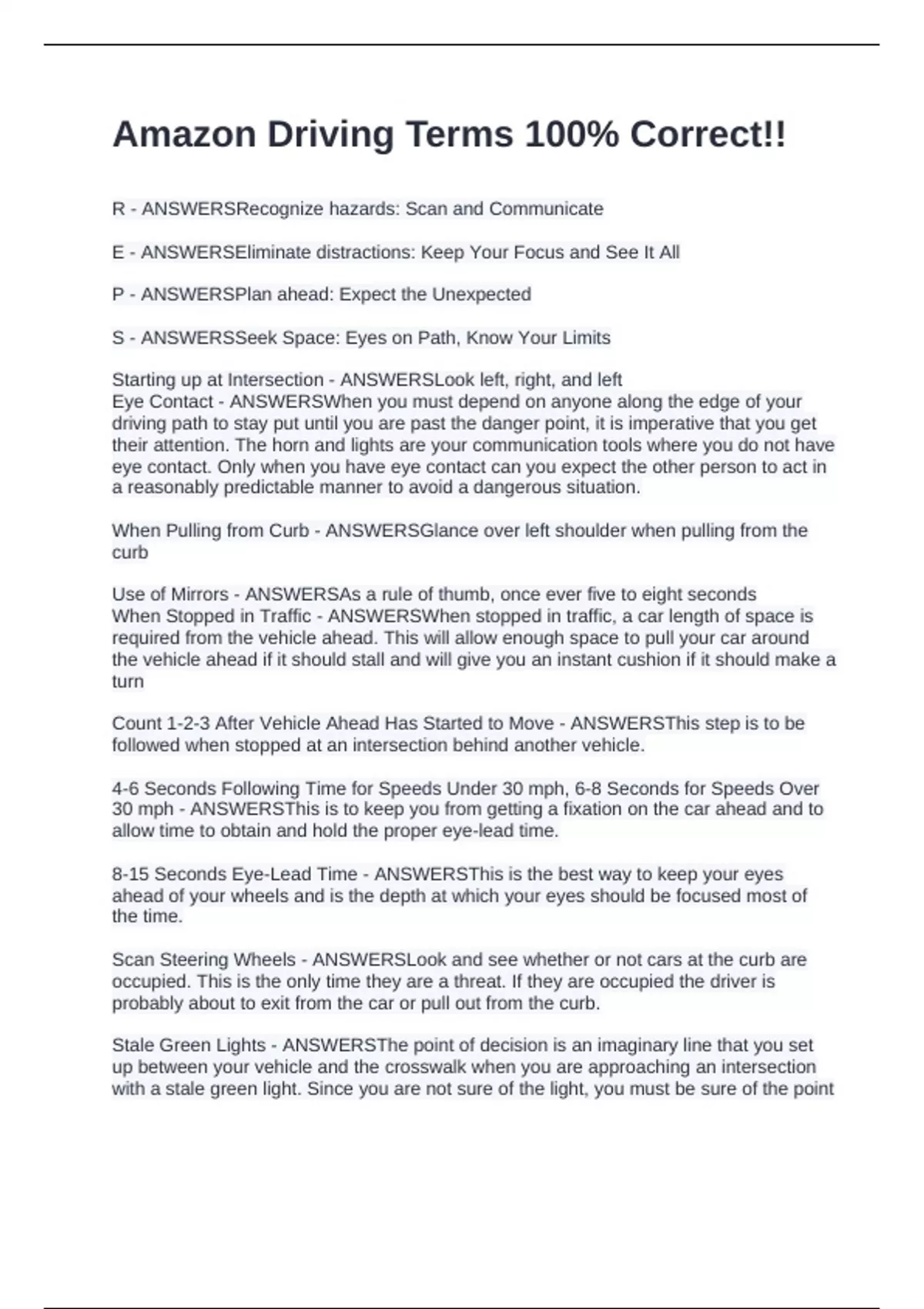 Count 1-2-3 After Vehicle Ahead Has Started to Move - ANSWERSThis step is to be