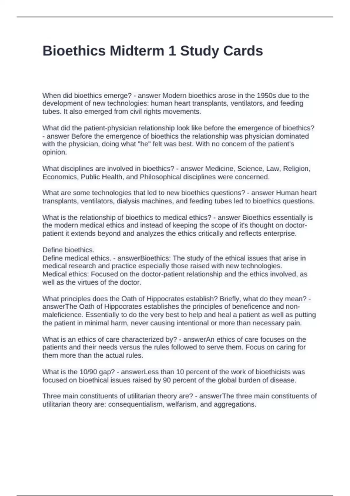 Bioethics Midterm 1 Study Cards