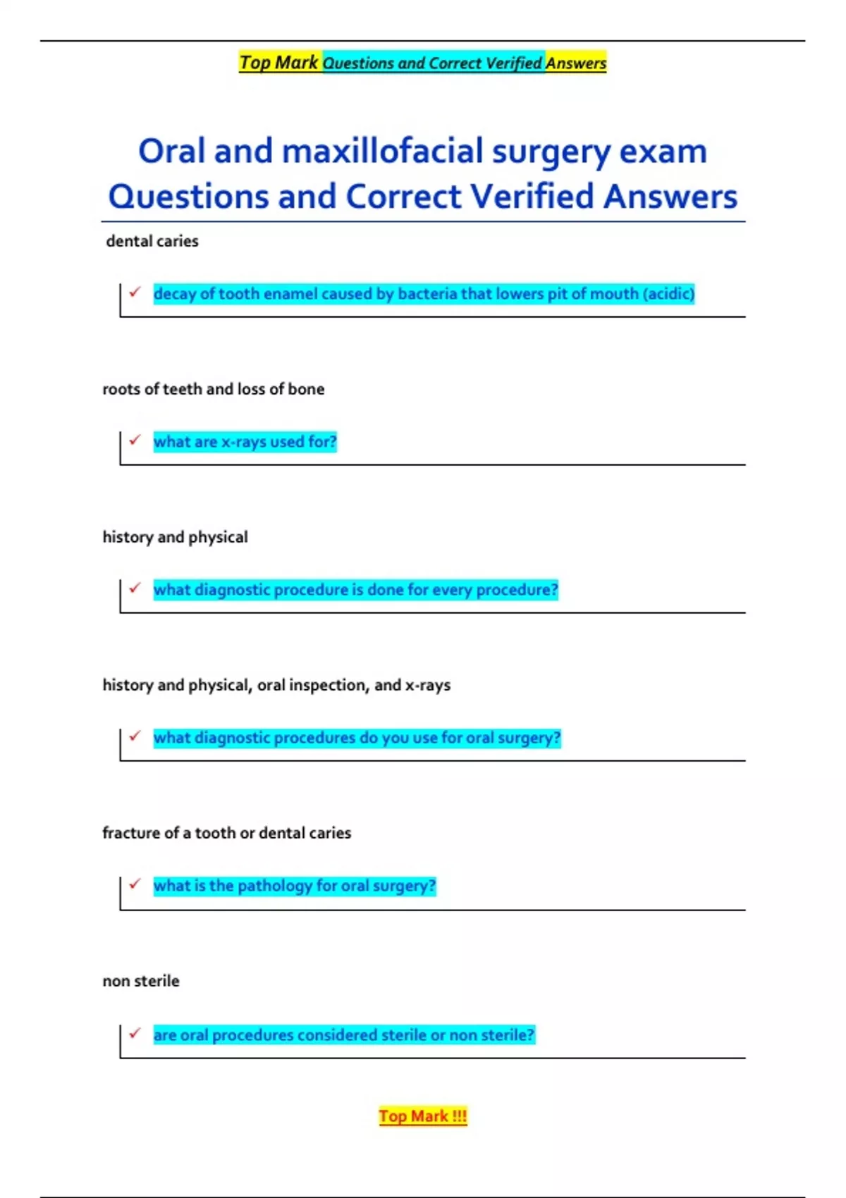 , Top Mark Questions and Correct Verified Answers