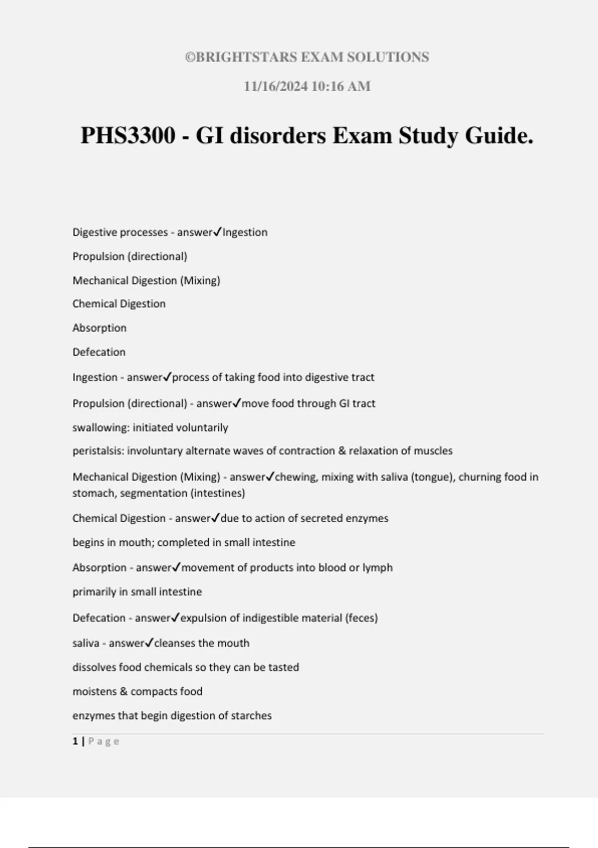 PHS3300 - GI disorders Exam Study Guide.