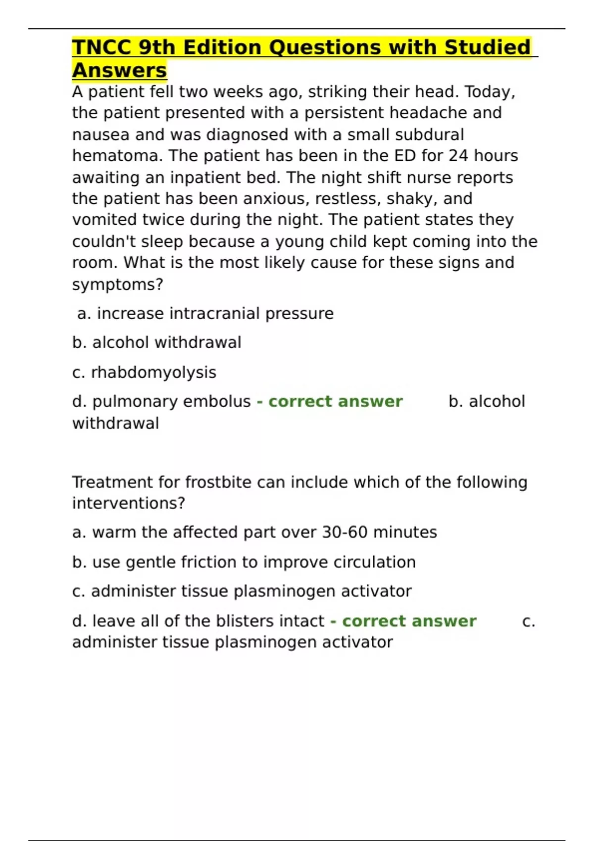 TNCC 9th Edition Questions with Studied Answers
