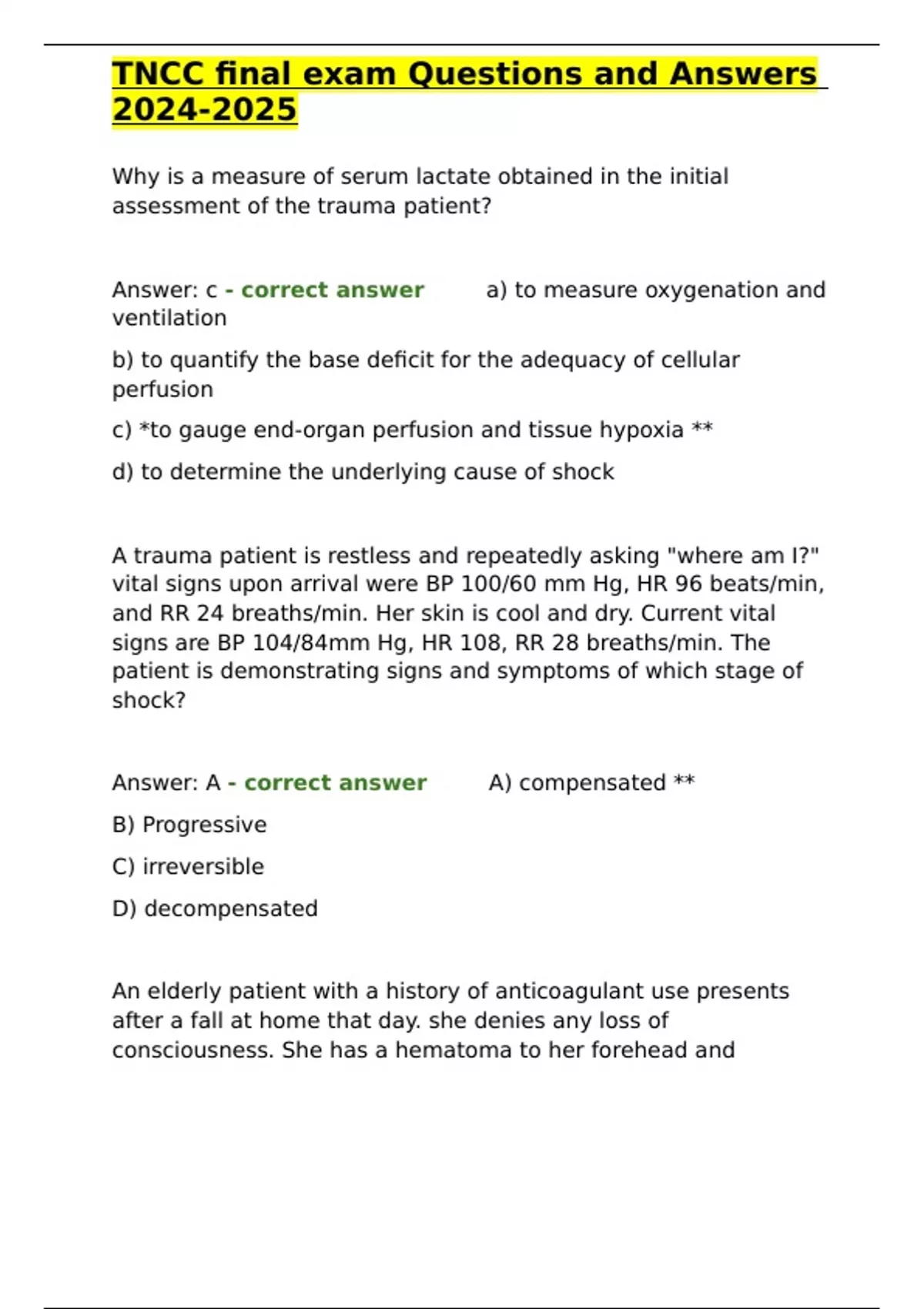 TNCC 9TH REAL EXAM ACTUAL VERIFIED EXAM TEST BANK