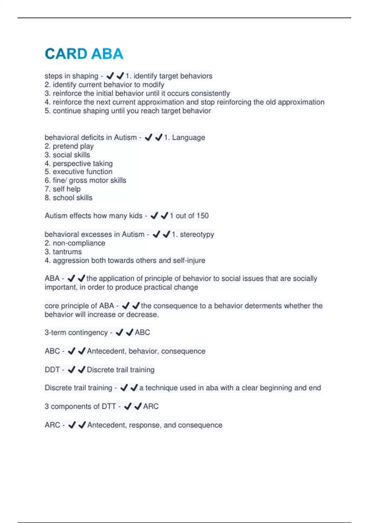 CARD ABA QUESTIONS WITH 100% CORRECT ANSWERS
