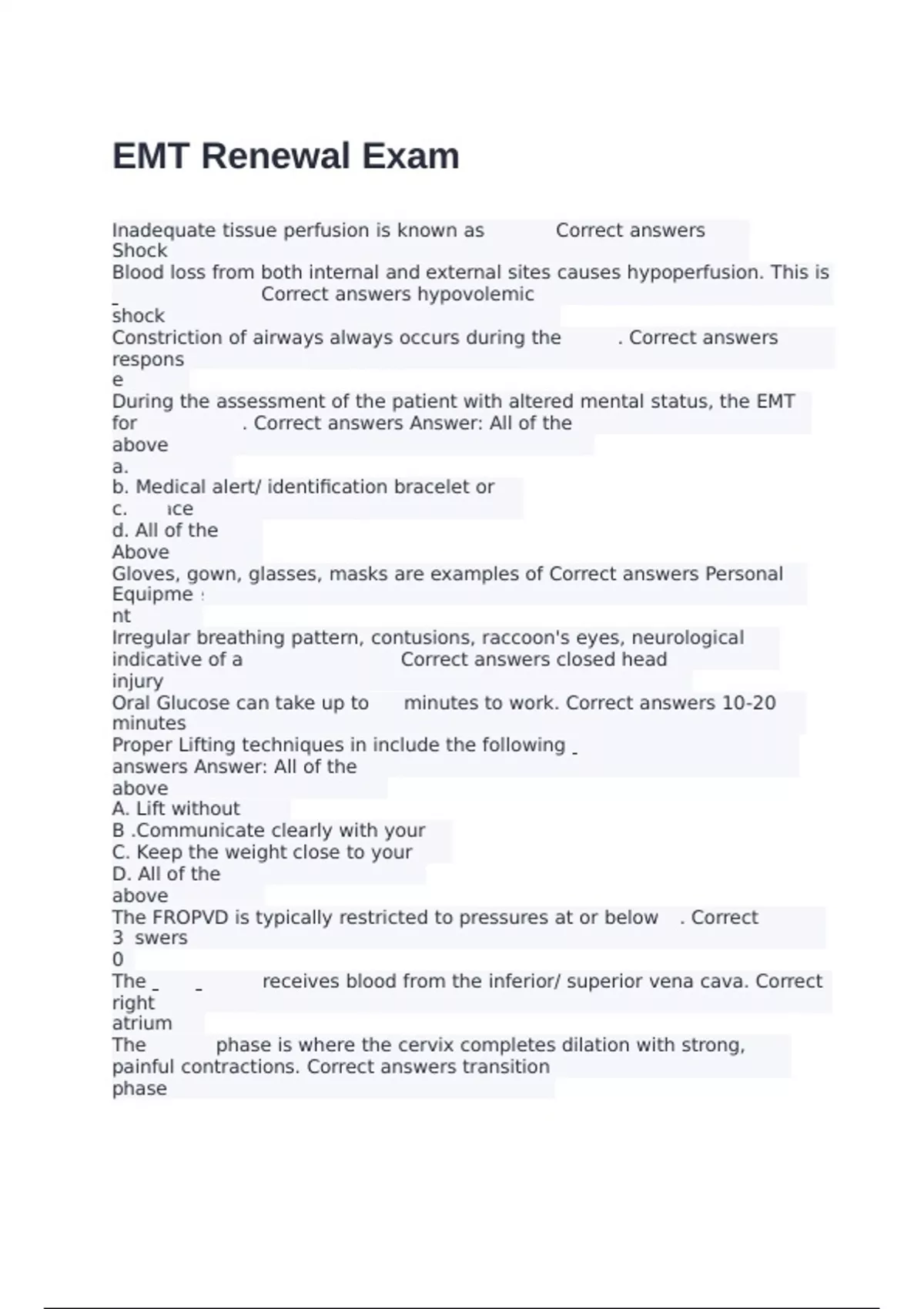 known as Correct answers hypovolemic