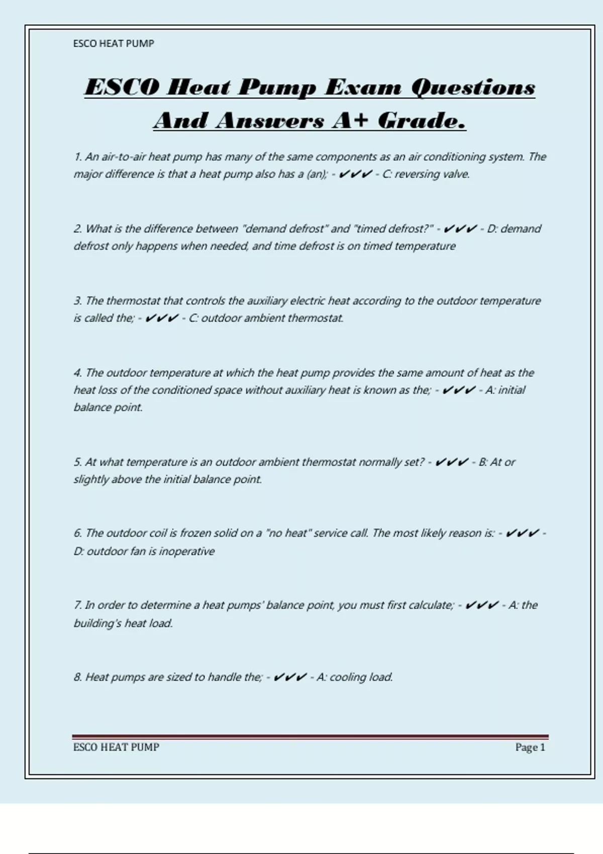ESCO Heat Pump Exam Questions