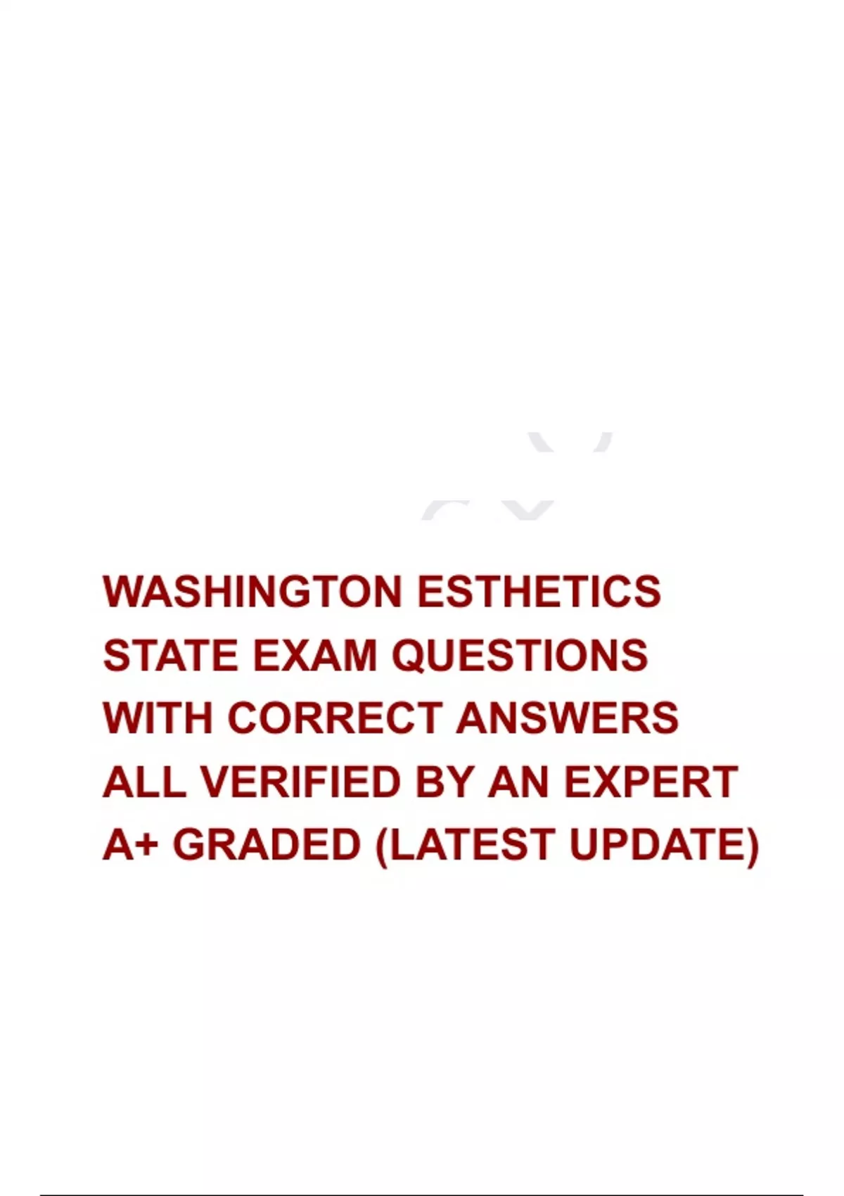 WASHINGTON ESTHETICS STATE EXAM QUESTIONS WITH CORRECT ANSWERS ALL VERIFIED BY AN EXPERT A+ GRADED (LATEST UPDATE)