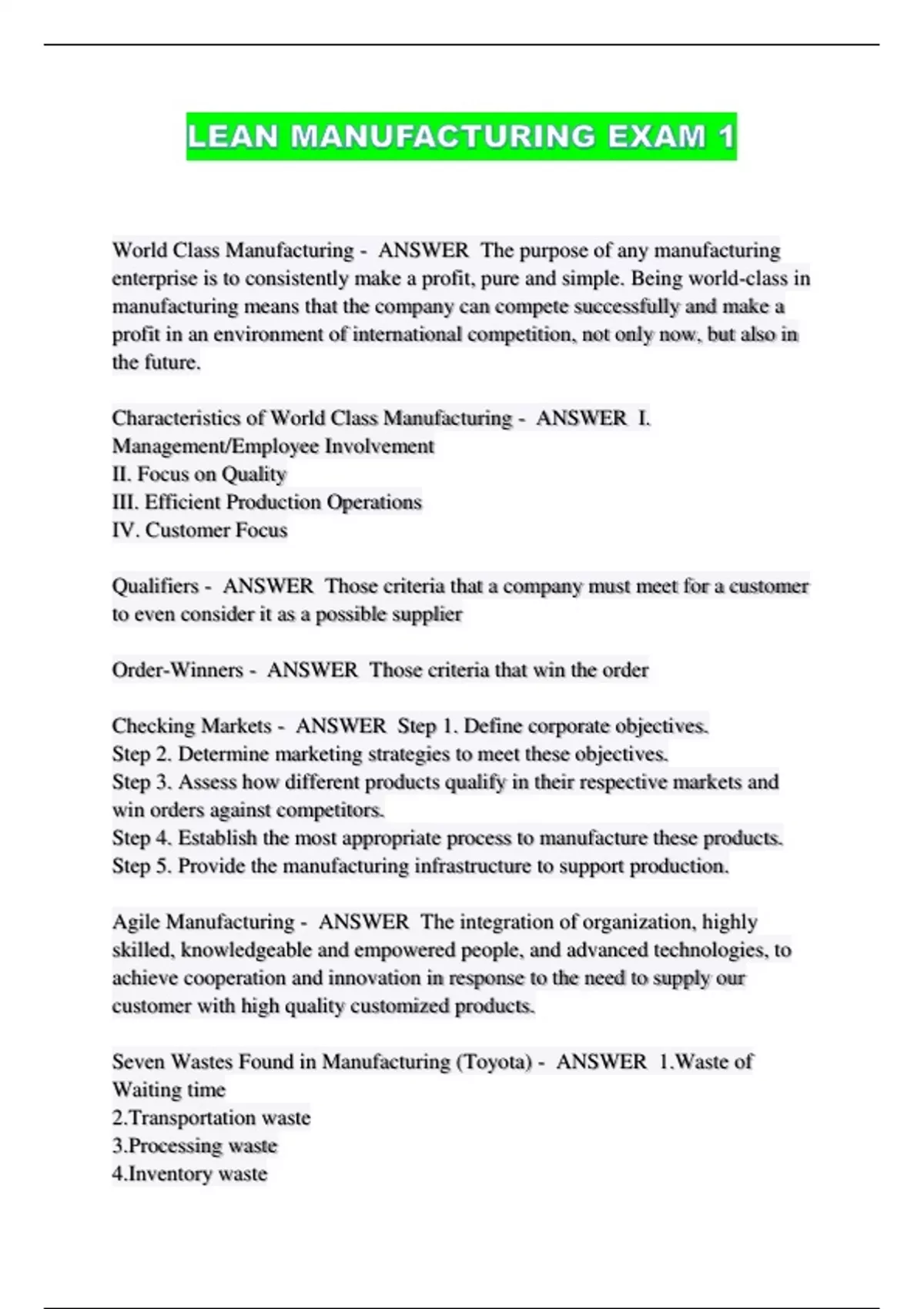 World Class Manufacturing - ANSWER The purpose of any manufacturing