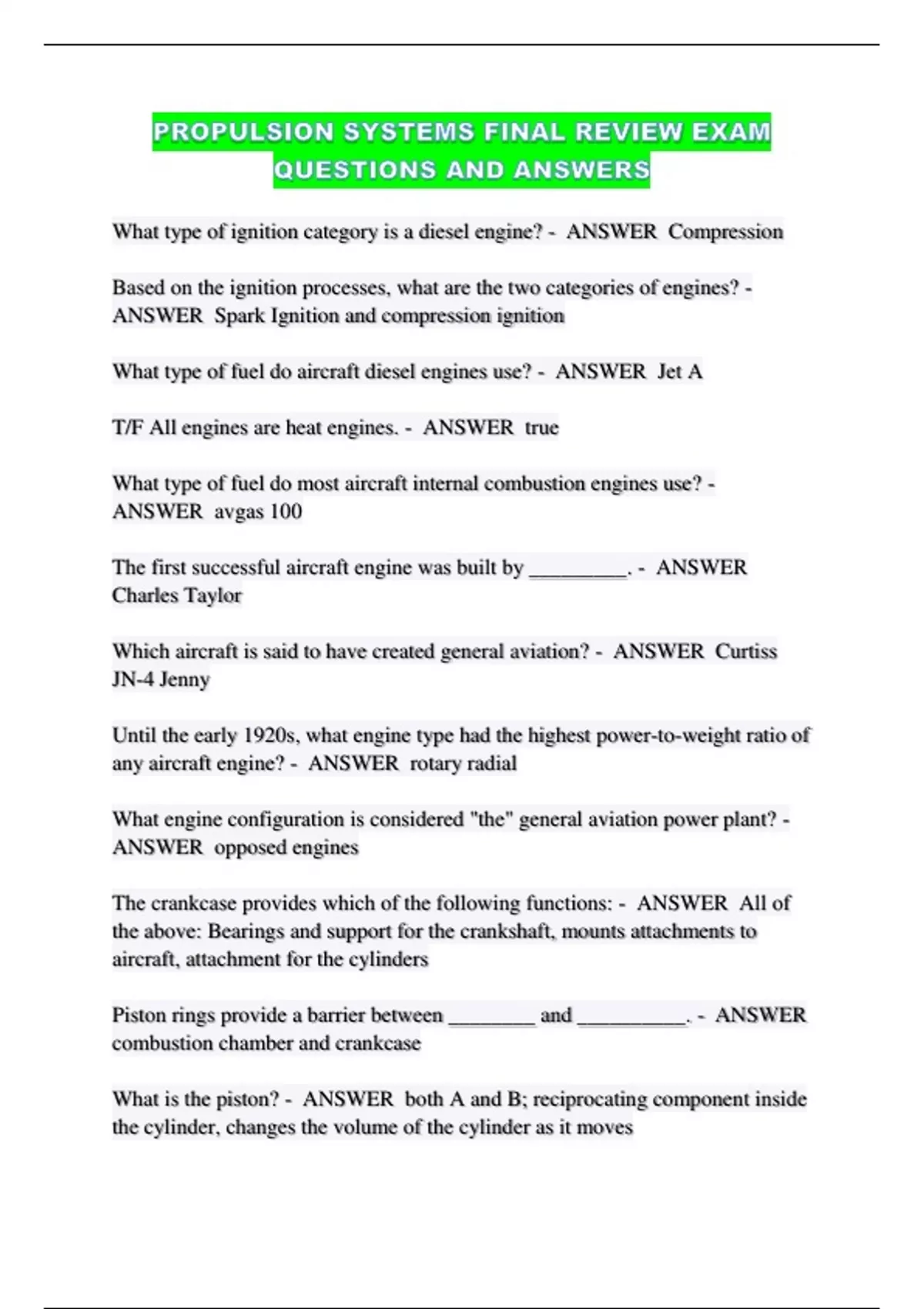 What type of fuel do aircraft diesel engines use? - ANSWER Jet A