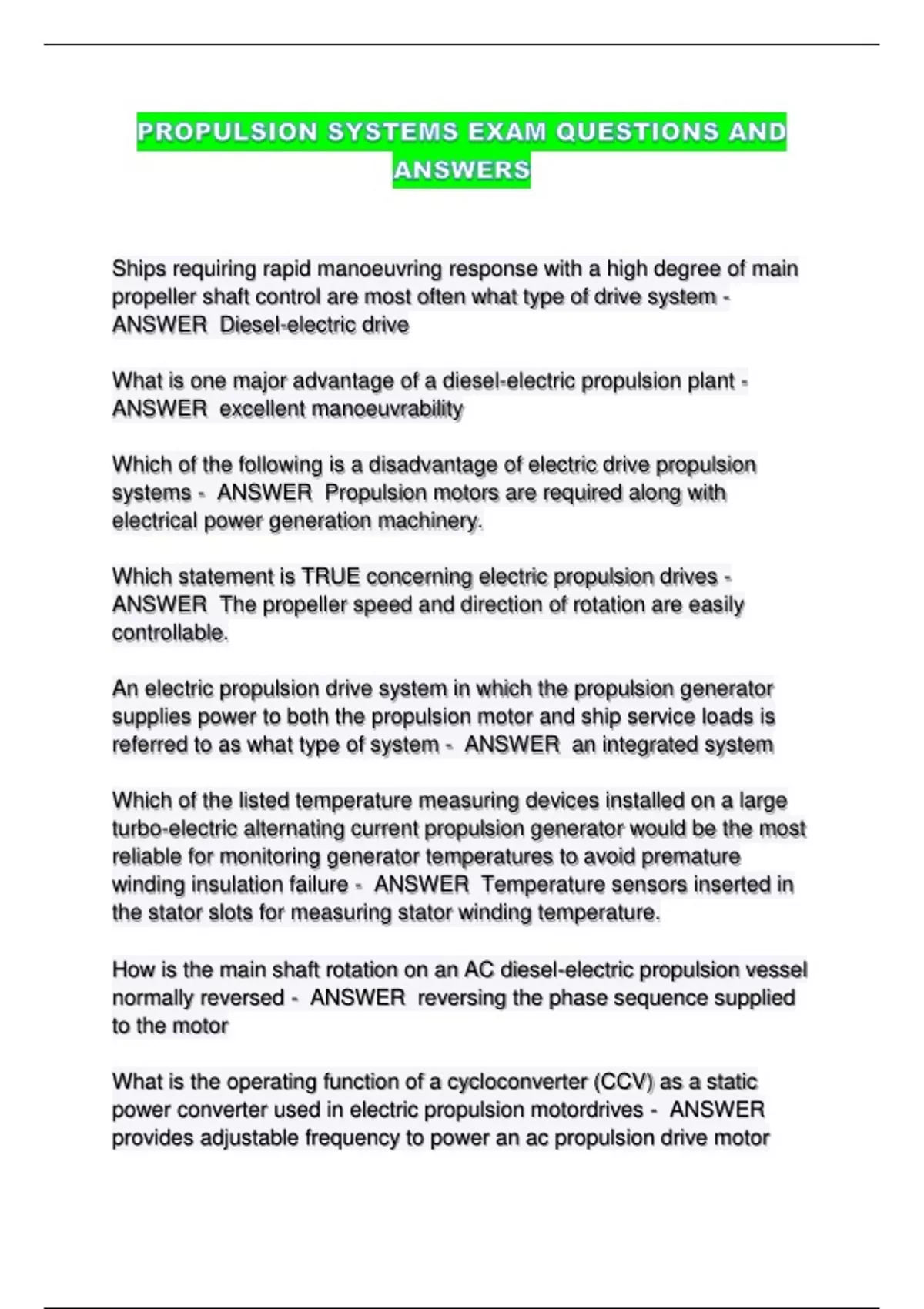 systems - ANSWER Propulsion motors are required along with