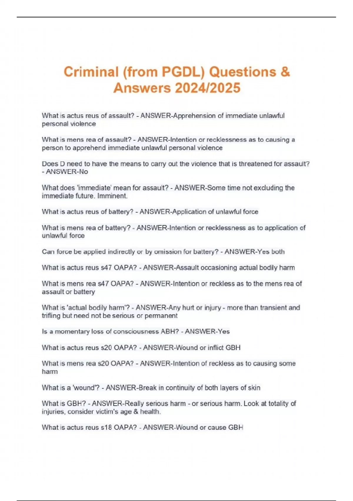 Criminal (from PGDL) Questions & Answers 2024/2025