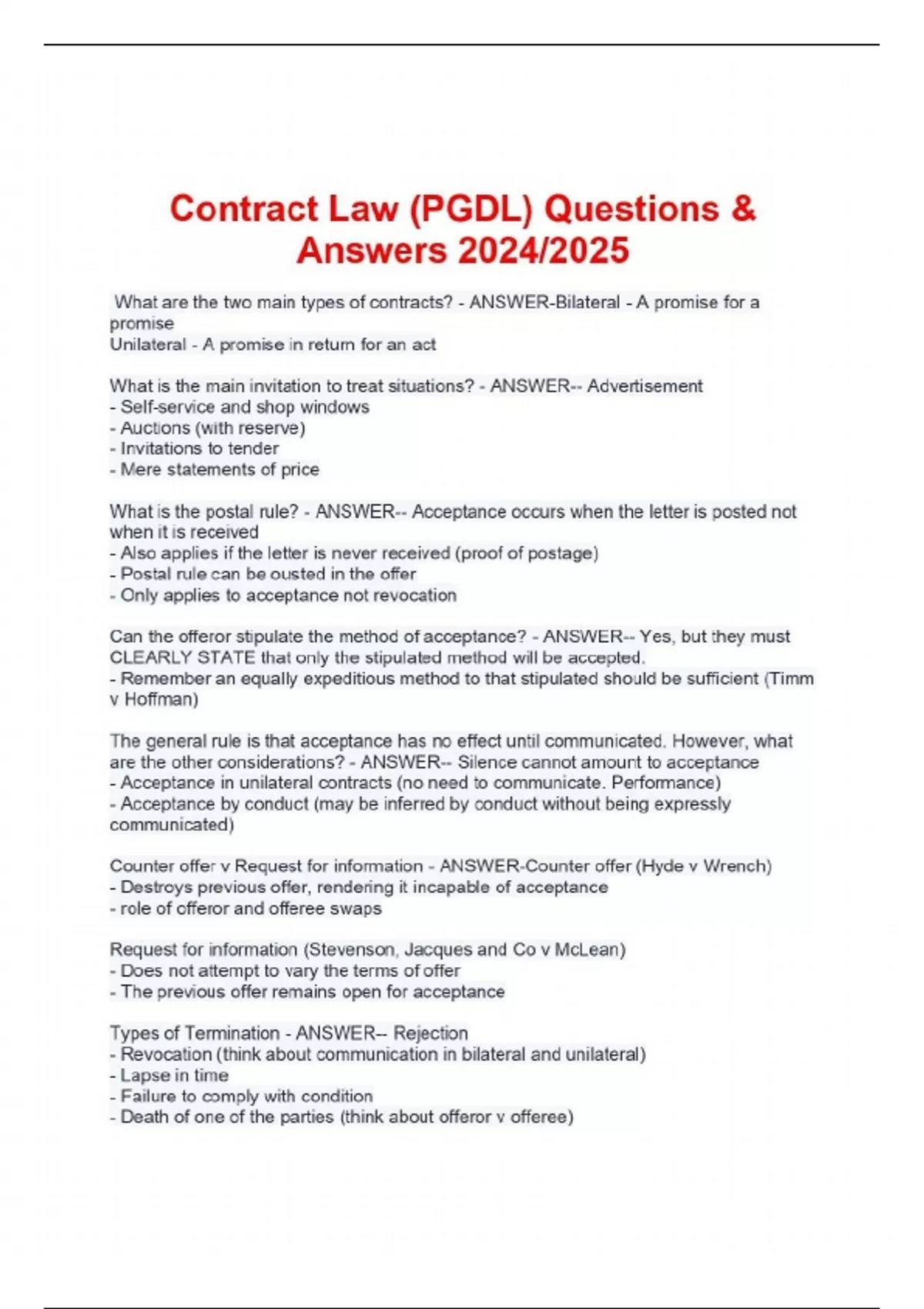 Contract Law (PGDL) Questions & Answers 2024/2025