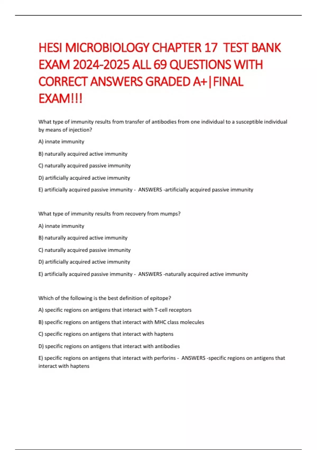 E) artificially acquired passive immunity - ANSWERS -naturally acquired passive immunity