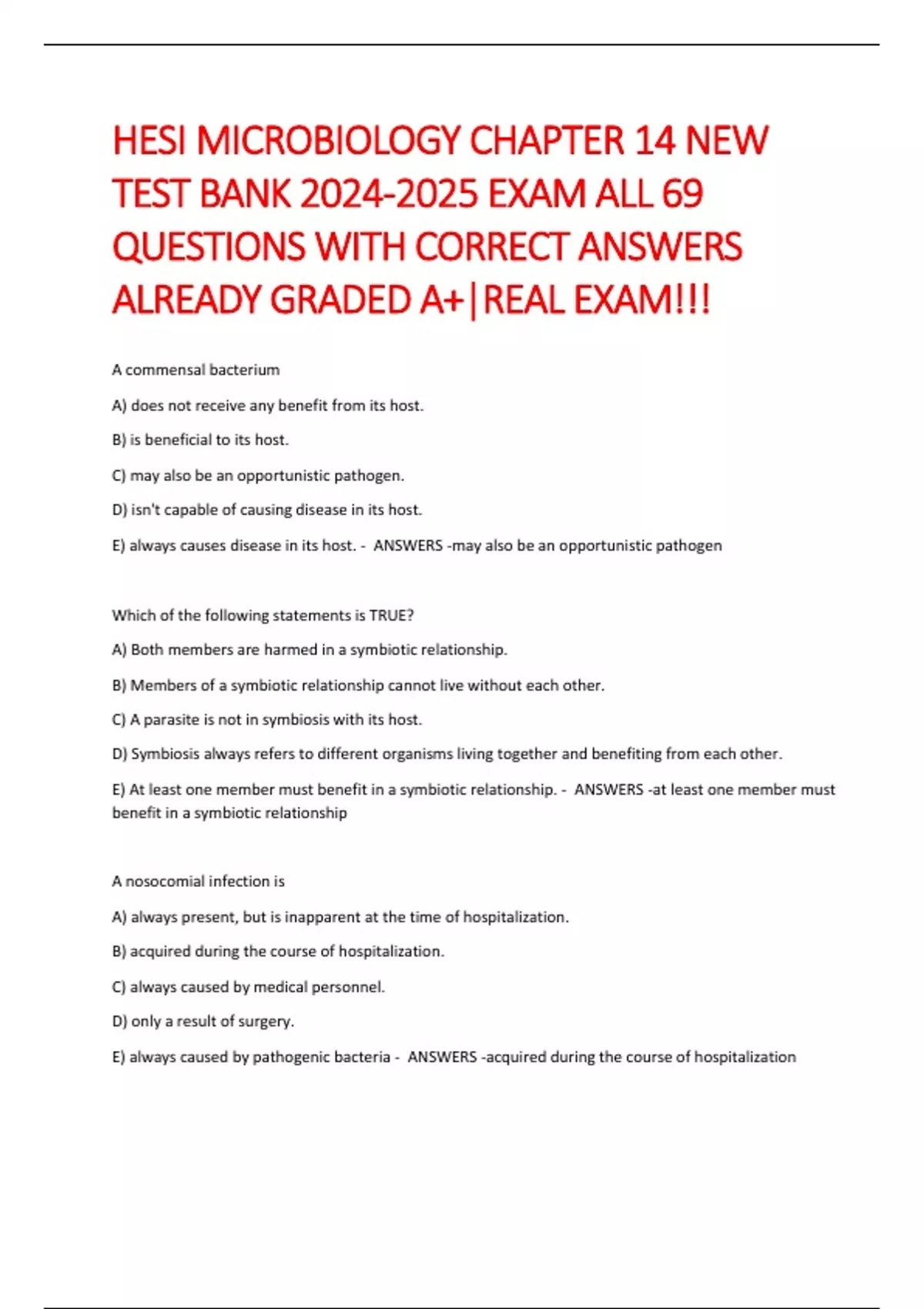 E) always caused by pathogenic bacteria - ANSWERS -acquired during the course of hospitalization