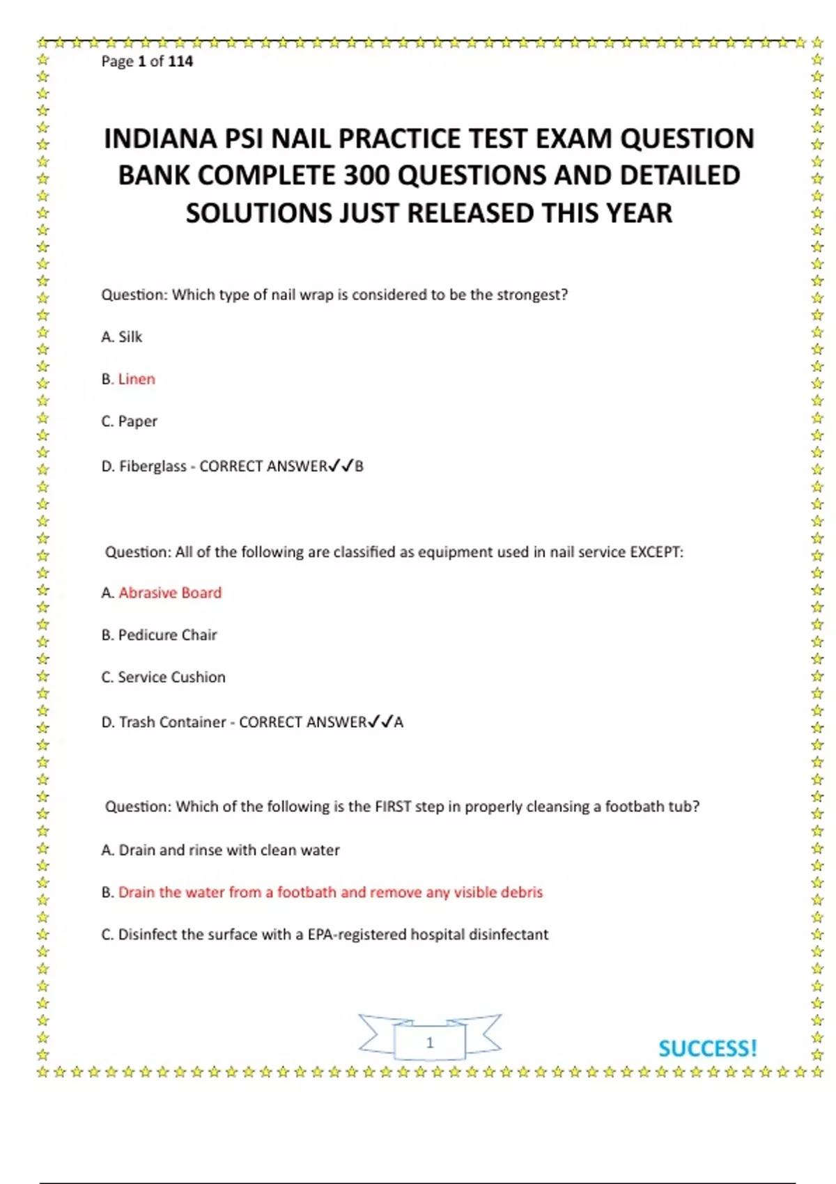 INDIANA PSI NAIL PRACTICE TEST EXAM QUESTION