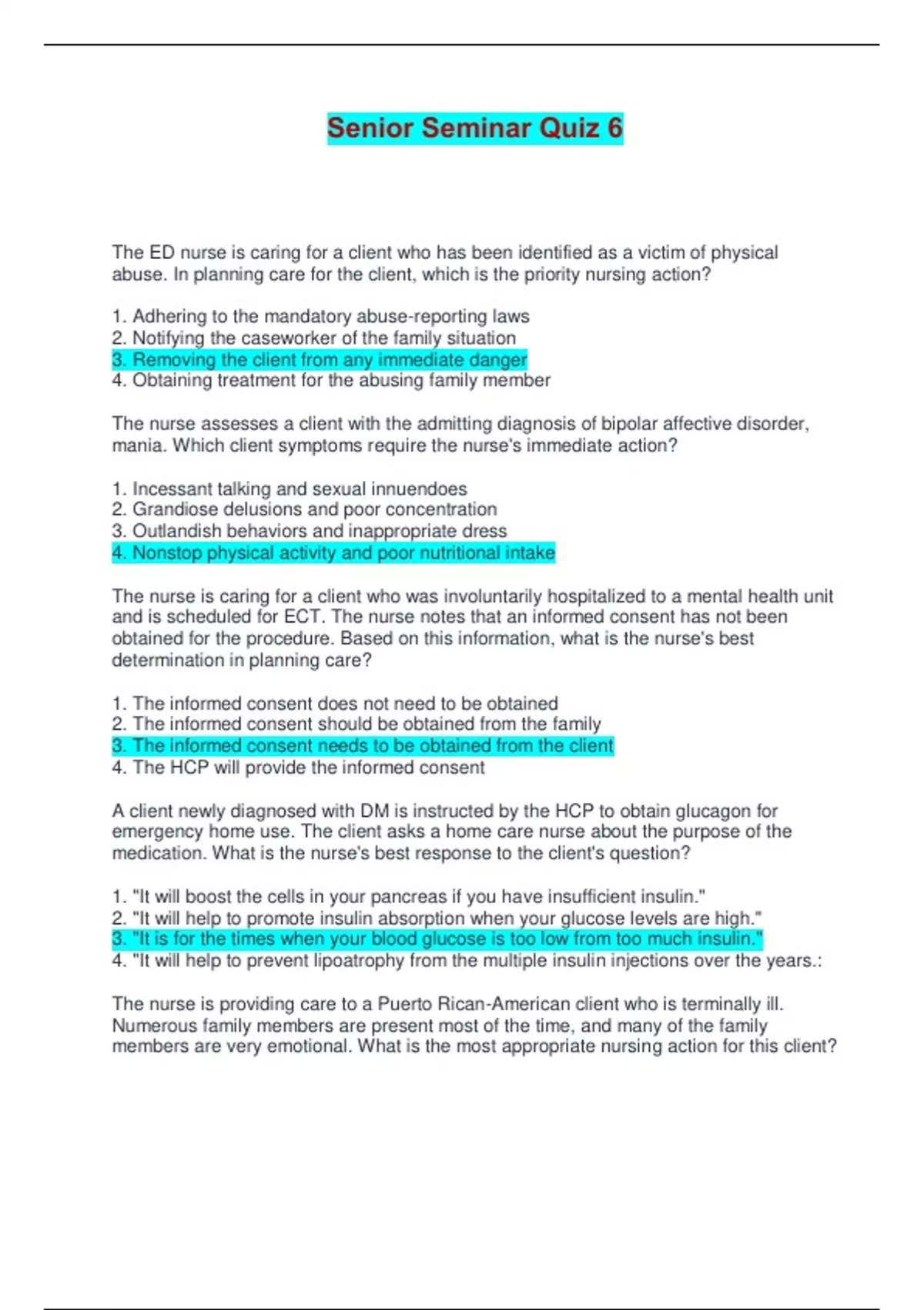 abuse. In planning care for the client, which is the priority nursing action?