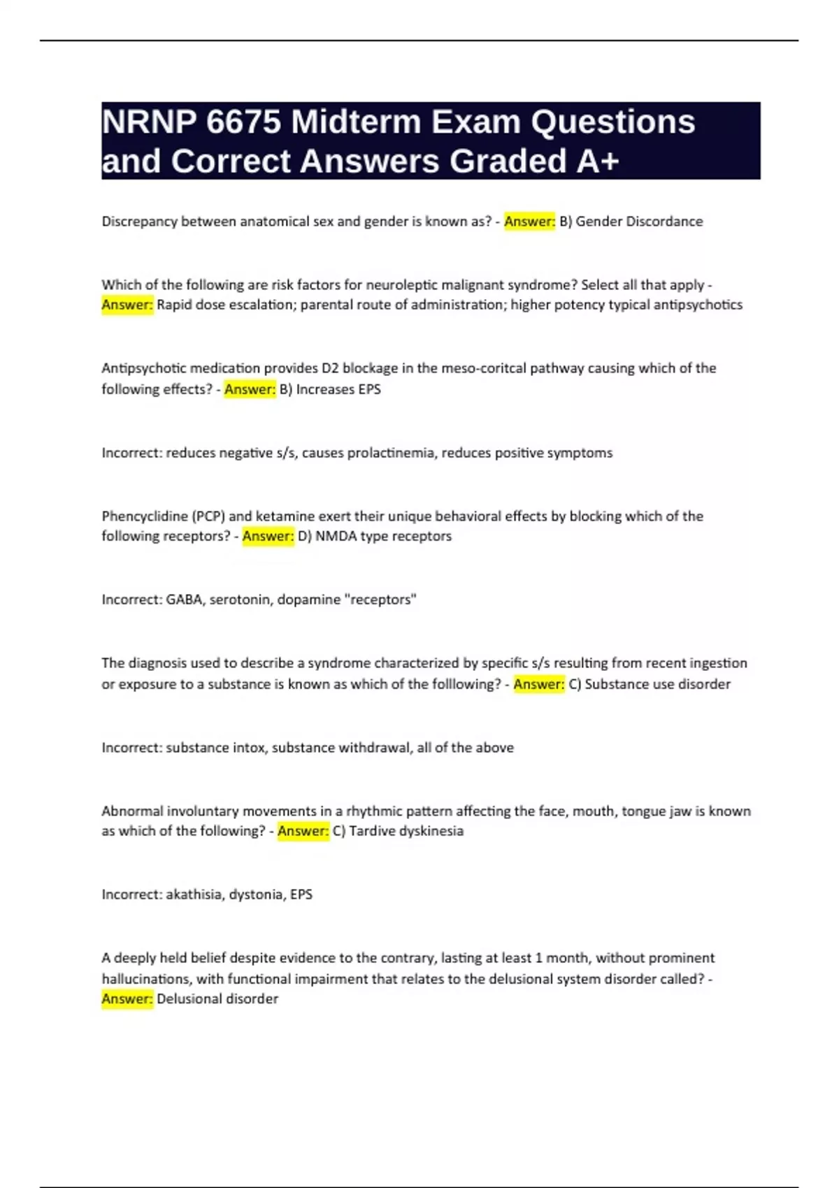 NRNP 6675 Midterm Exam Questions and Correct Answers Graded A+
