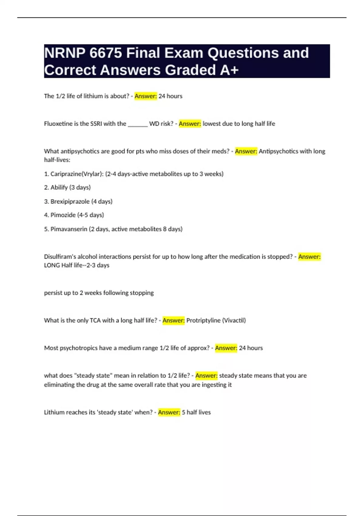 NRNP 6675 Final Exam Questions and Correct Answers Graded A+.
