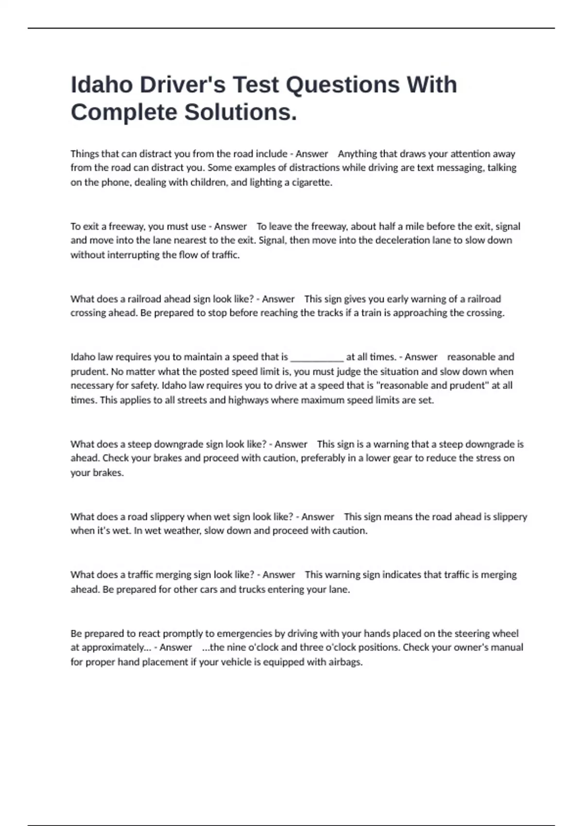 Idaho law requires you to maintain a speed that is __________ at all times. - Answer reasonable and