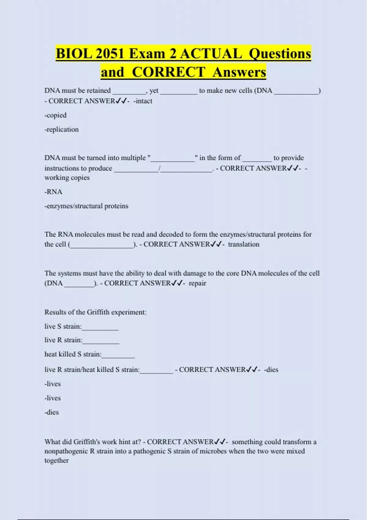 (DNA ________). - CORRECT ANSWER✔✔- repair