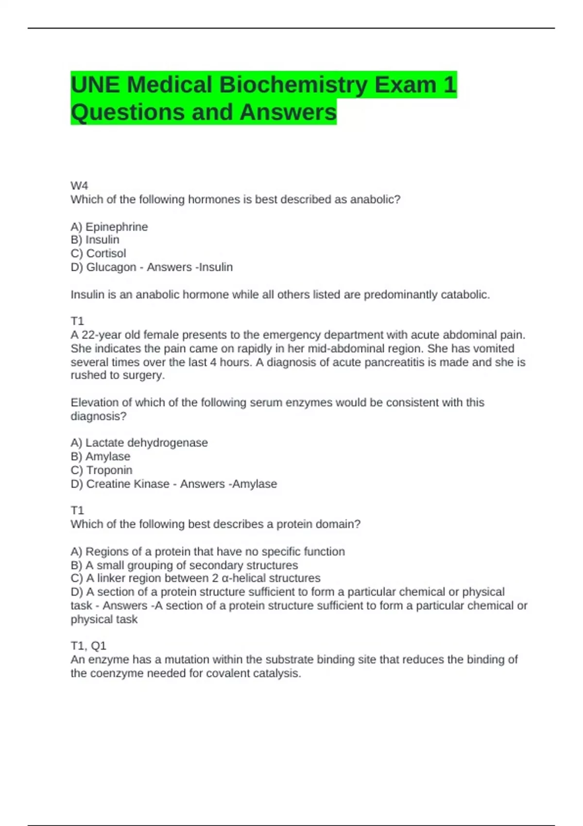 UNE Medical Biochemistry Exam 1