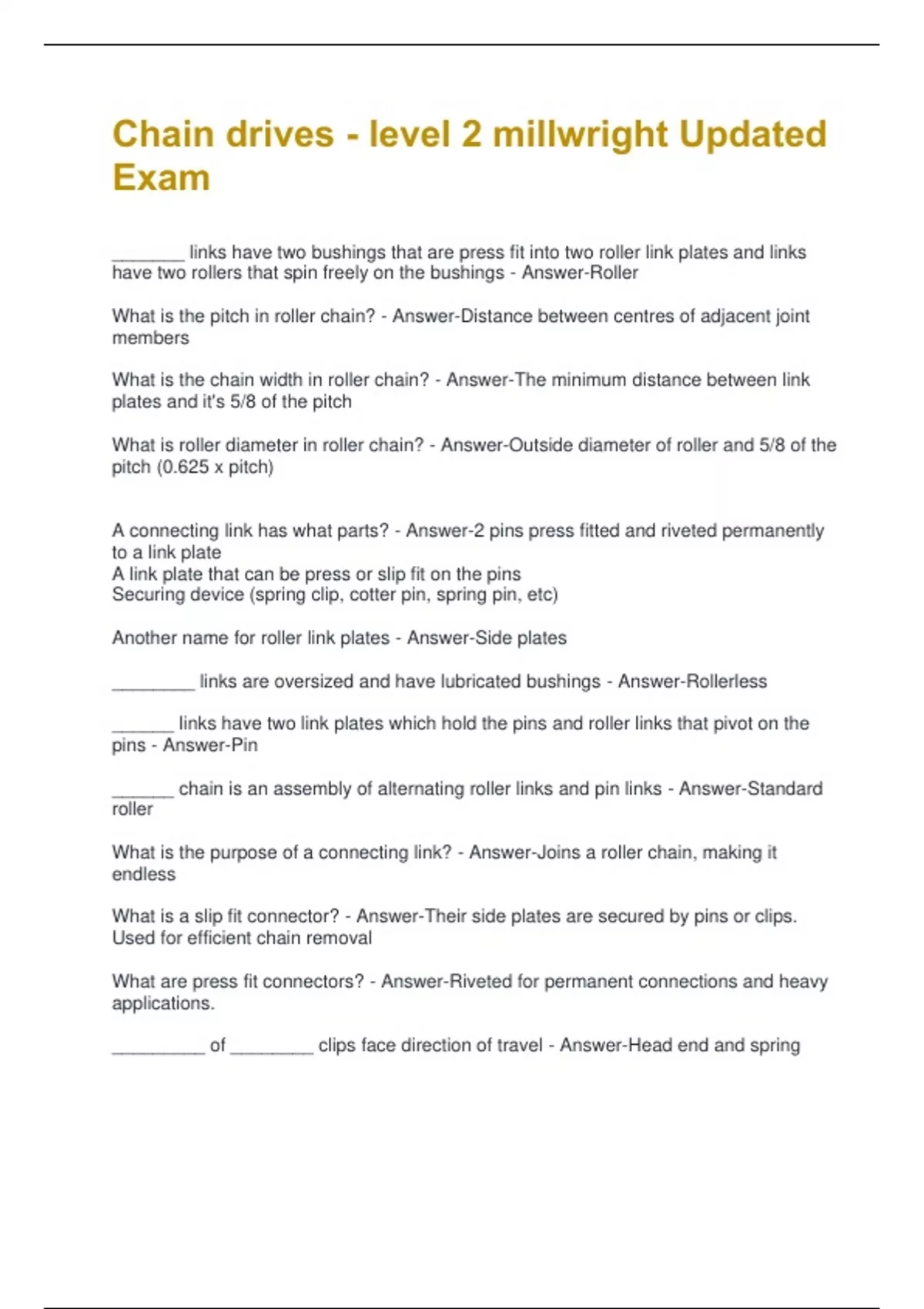 What is the purpose of a connecting link? - Answer-Joins a roller chain, making it
