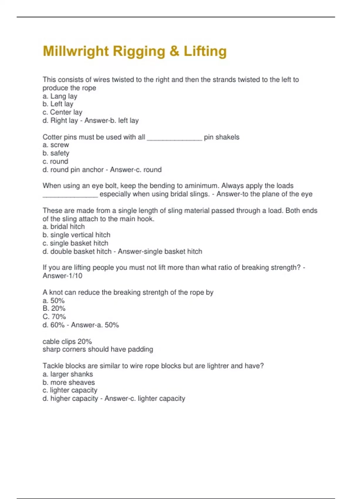 d. double basket hitch - Answer-single basket hitch