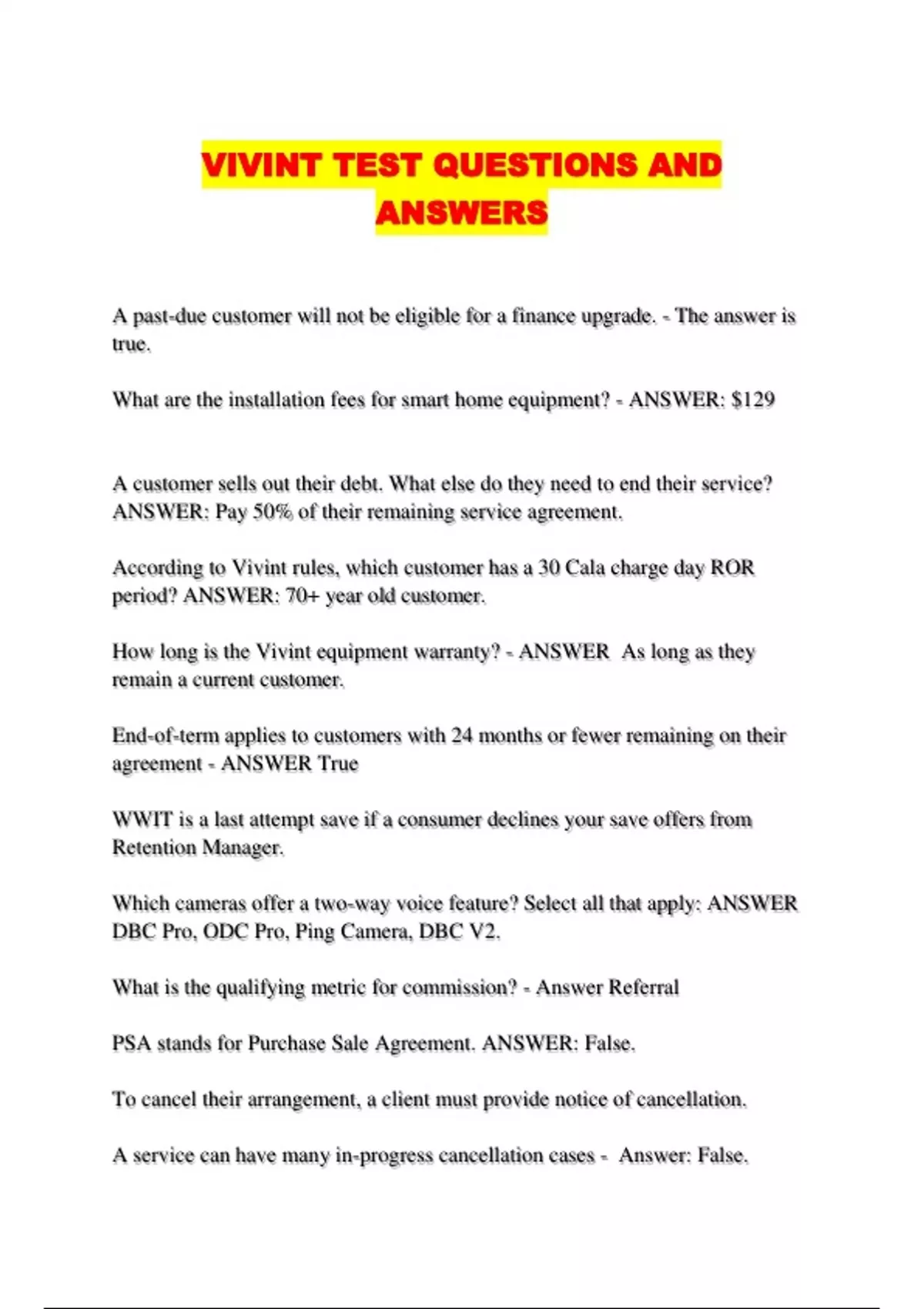 VIVINT TEST QUESTIONS AND