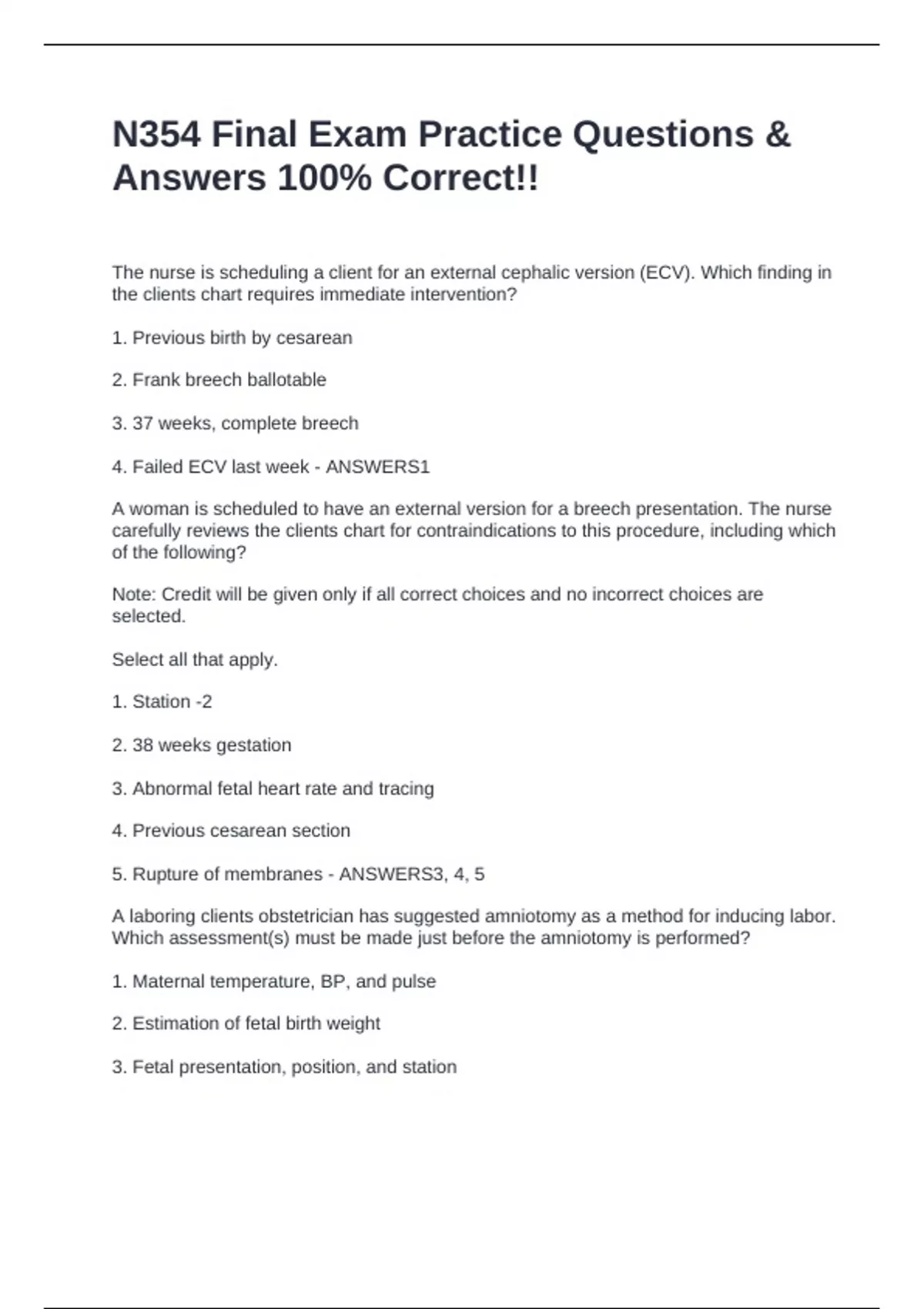 5. The contractions elicited are similar to those of spontaneous labor. - ANSWERS2, 4,