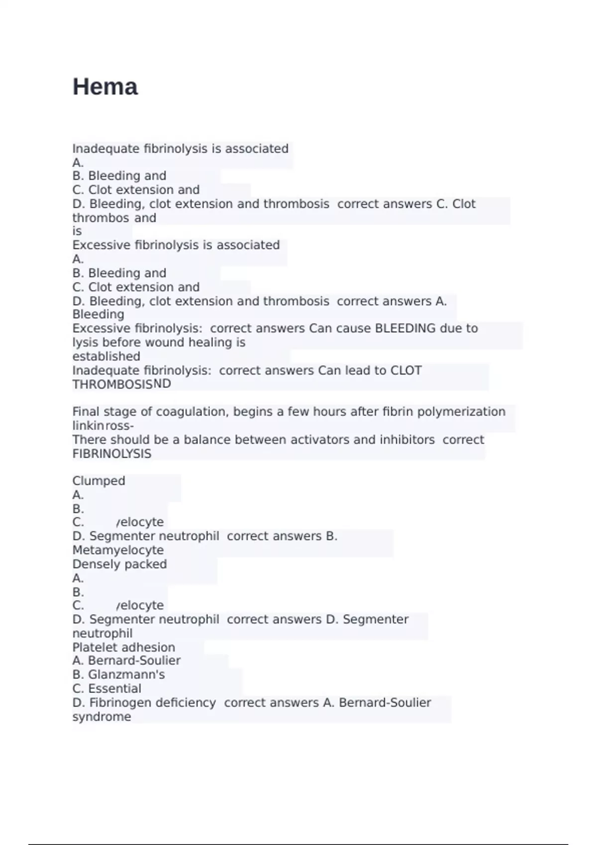 Inadequate fibrinolysis: correct answers Can lead to CLOT