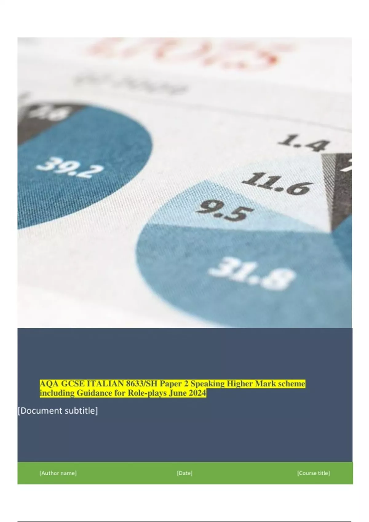 AQA GCSE ITALIAN 8633/SH Paper 2 Speaking Higher Mark scheme including Guidance for Role-plays June 2024