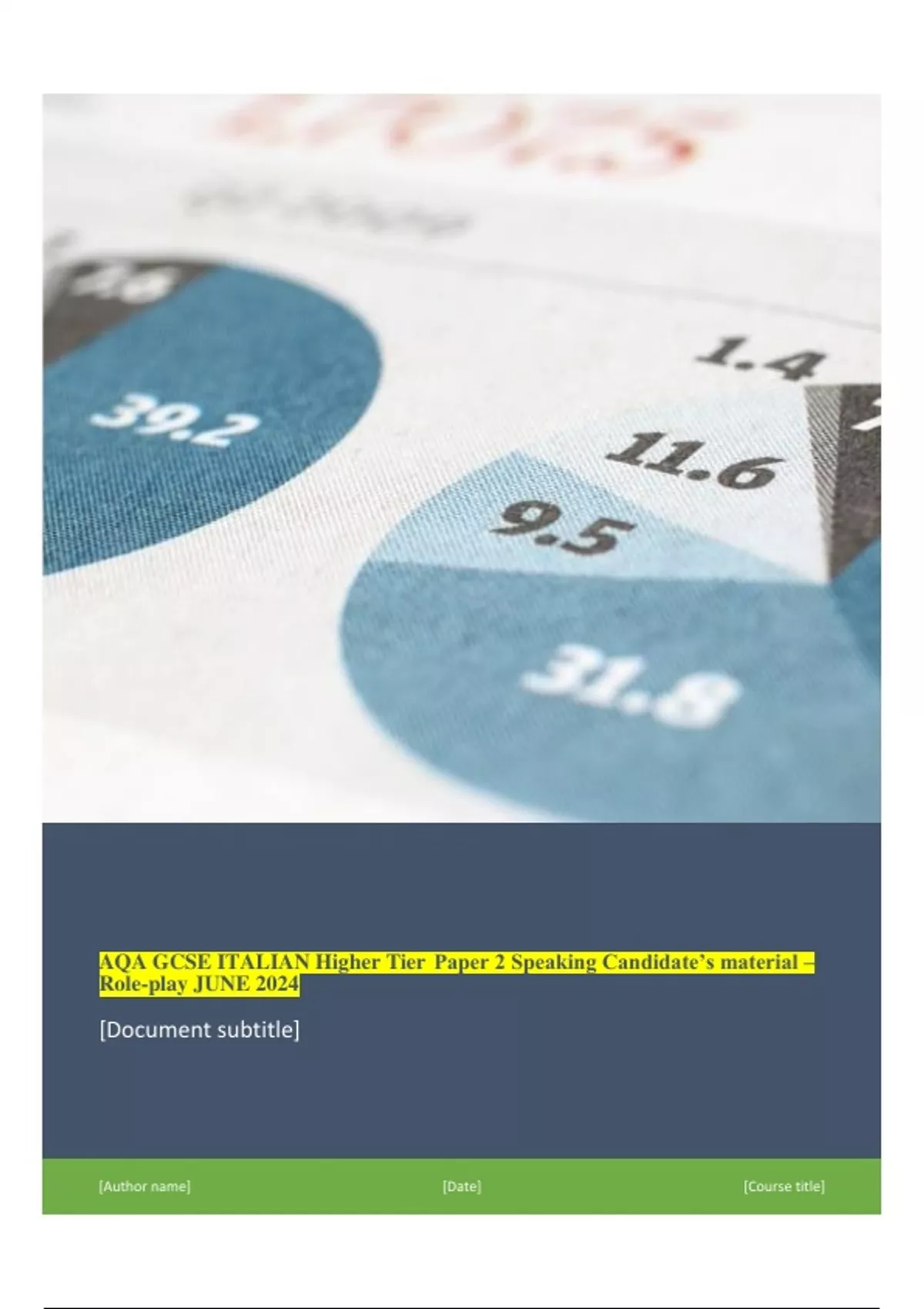 AQA GCSE ITALIAN Higher Tier Paper 2 Speaking Candidate’s material – Role-