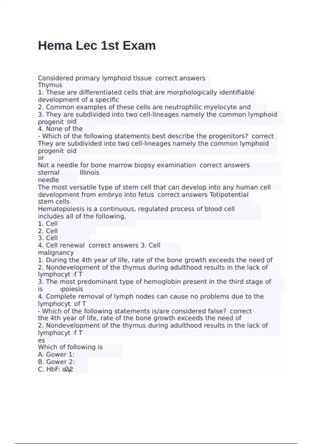 The normal sequence of blood cell development correct answers Yolk sac