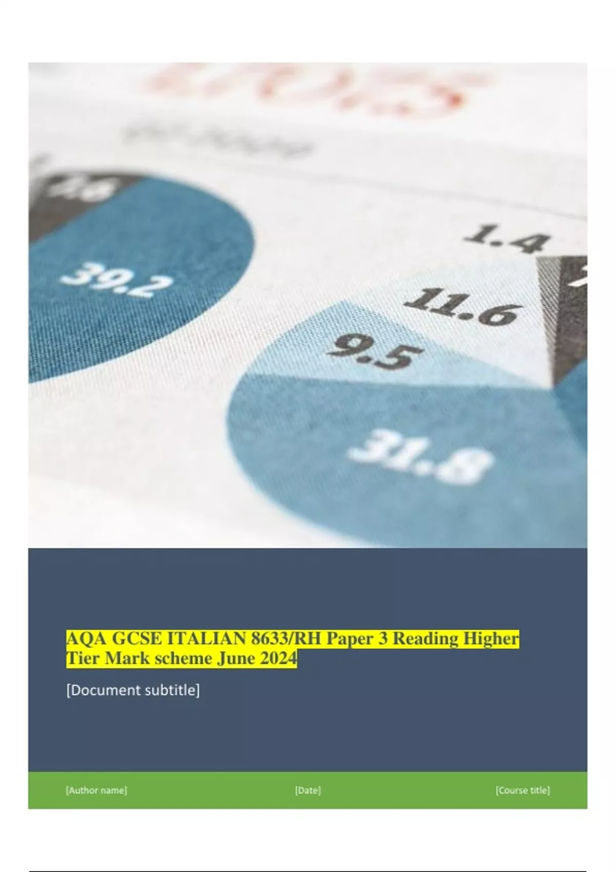 , AQA GCSE ITALIAN 8633/RH Paper 3 Reading Higher Tier