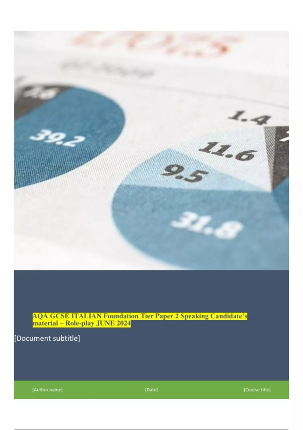 AQA GCSE ITALIAN Foundation Tier Paper 2 Speaking Candidate’s material – Role-play JUNE 2024