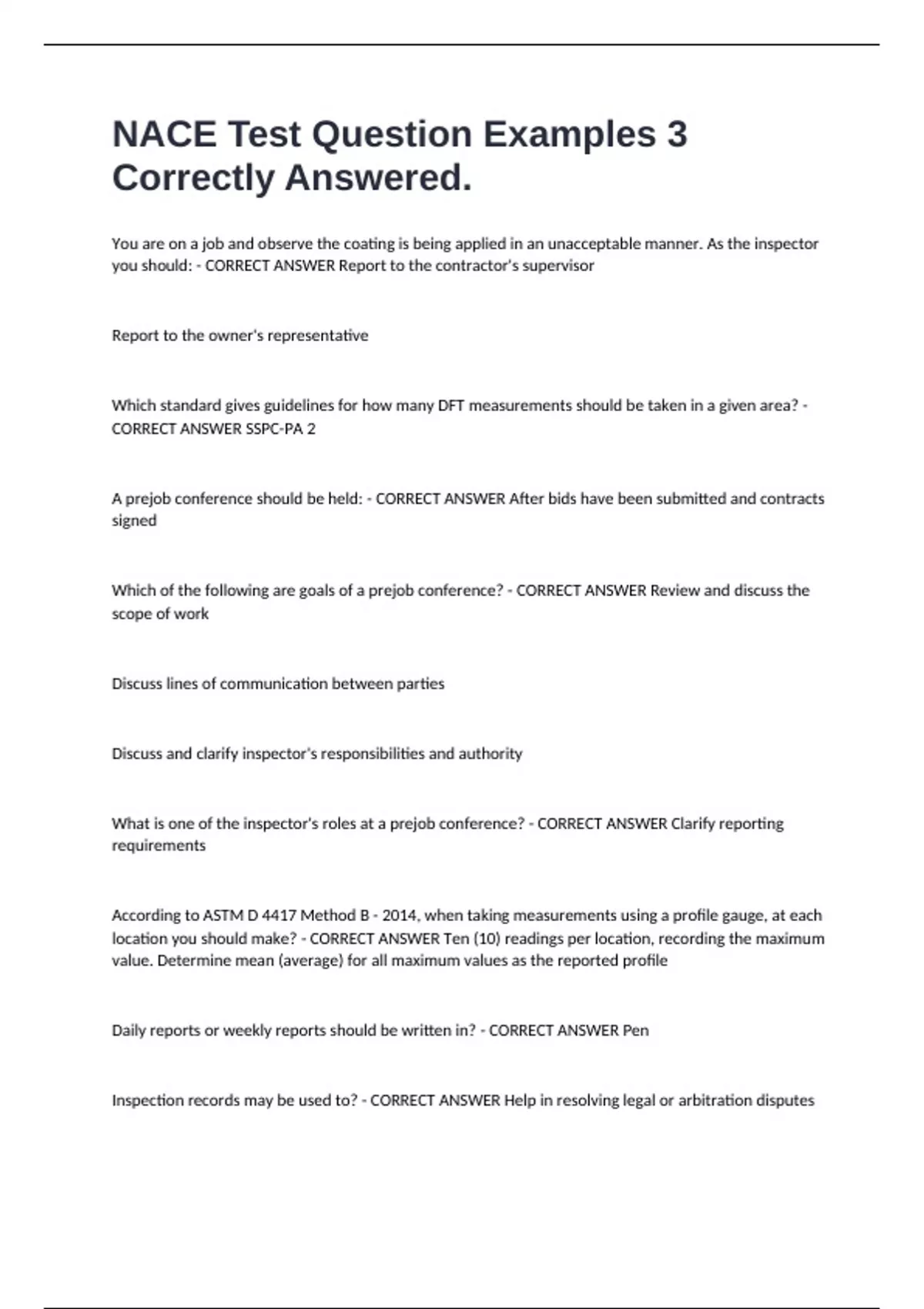 CORRECT ANSWER SSPC-PA 2