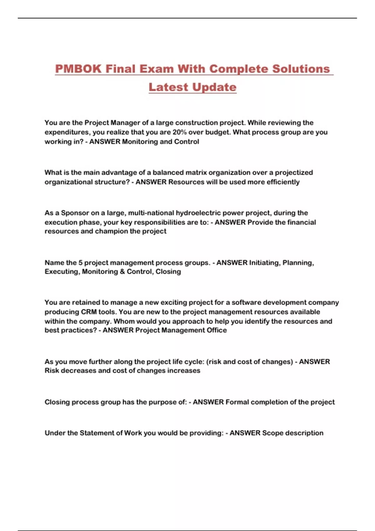 Name the 5 project management process groups. - ANSWER Initiating, Planning,