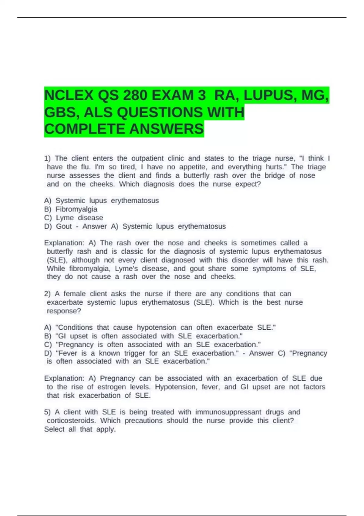 5. ffA ffnurse ffis ffcaring fffor ffa ffclient ffwho ffhas ffSLE ffand ffis ffexperiencing ffan ffepisode