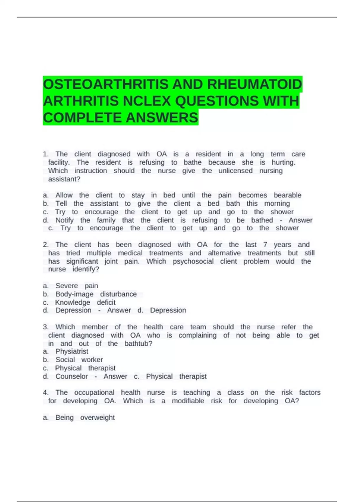 ARTHRITIS NCLEX QUESTIONS WITH