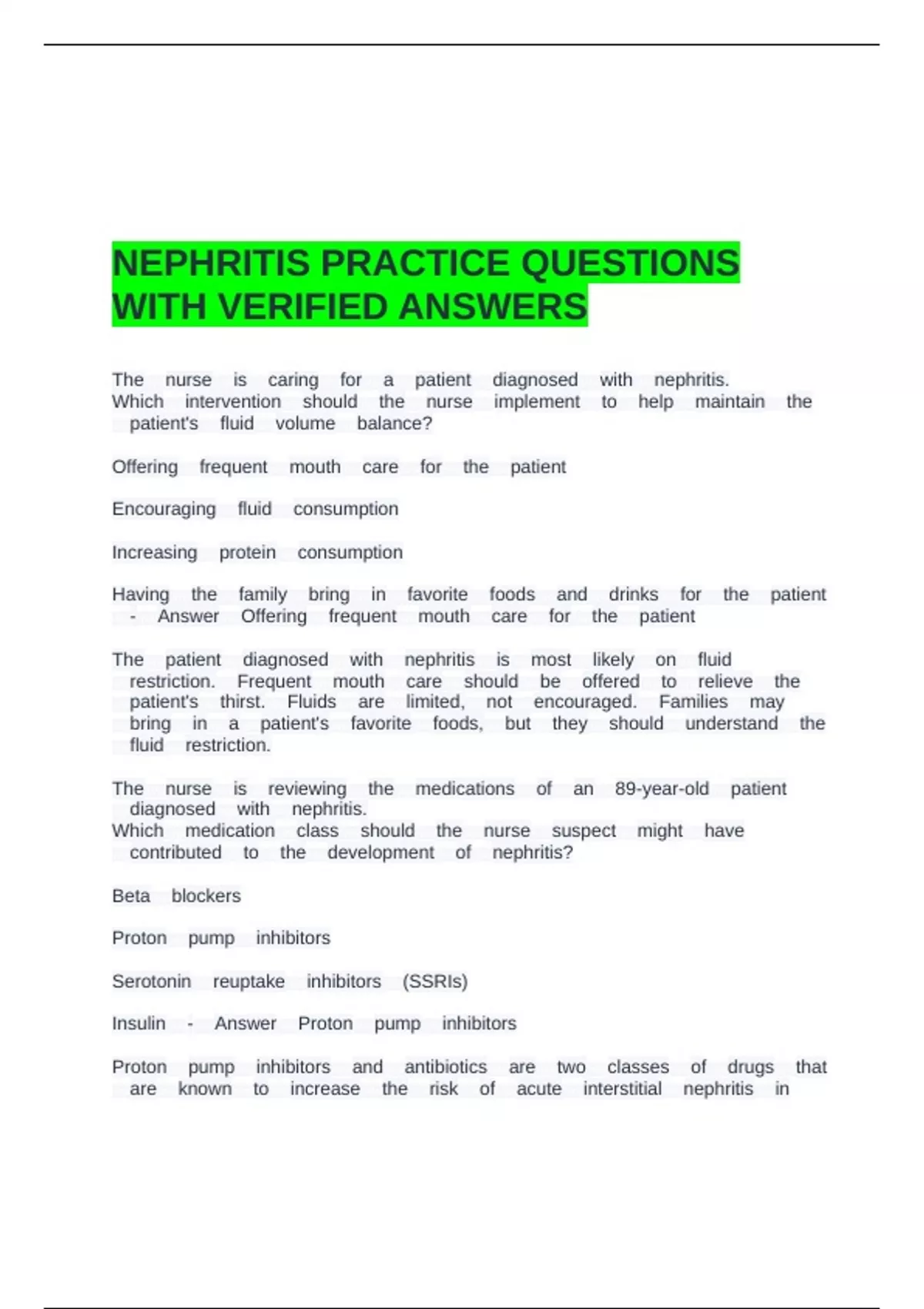 wwand wwwater. wwThe wwpatient wwsuspected wwof wwhaving wwnephritis wwwould wwnot