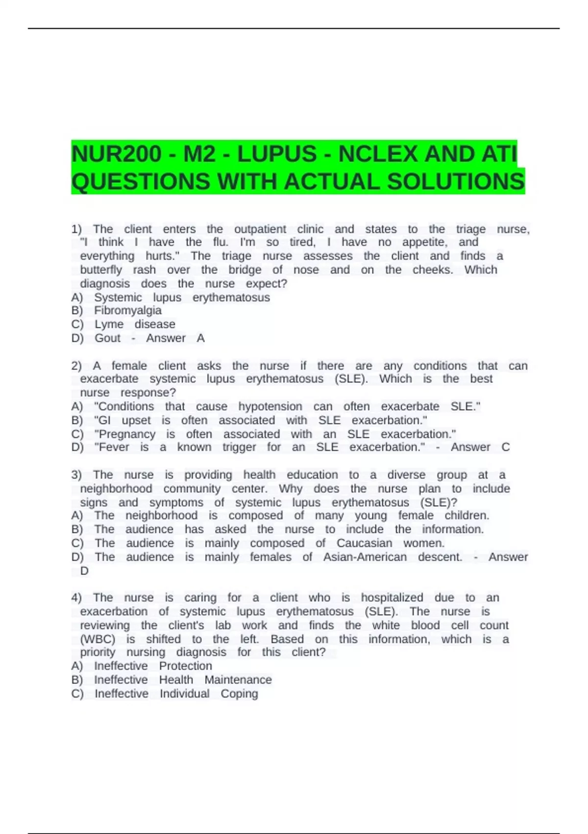 ooexacerbation ooof oosystemic oolupus ooerythematosus oo(SLE). ooThe oonurse oois