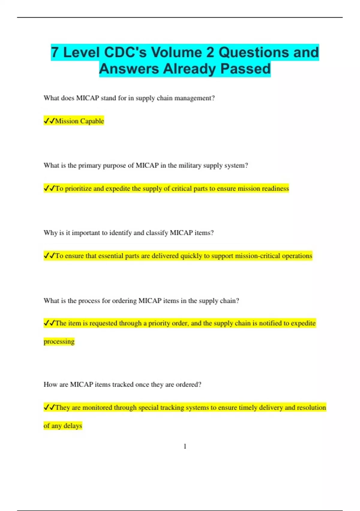 ✔✔MICAP items are given higher priority due to their critical role in maintaining mission