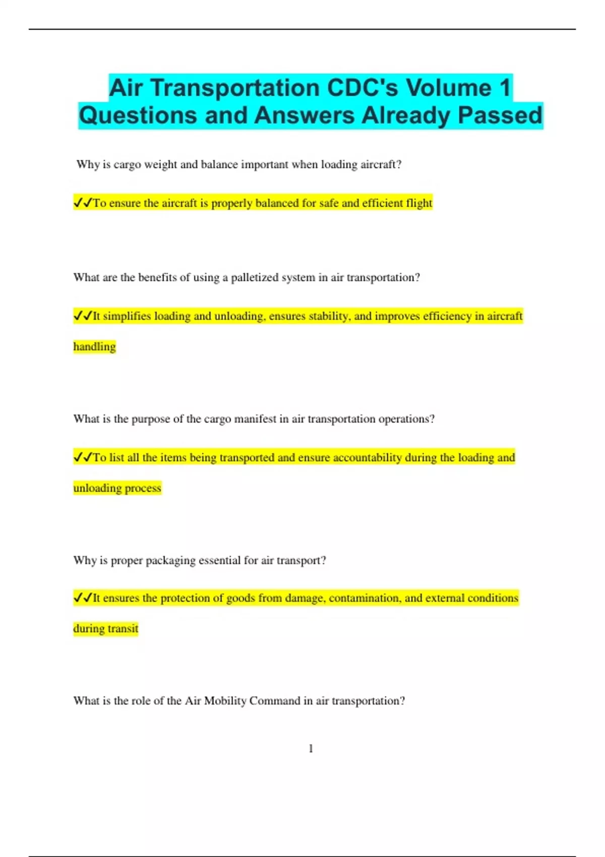 Air Transportation CDC's Volume 1 Questions and Answers Already Passed
