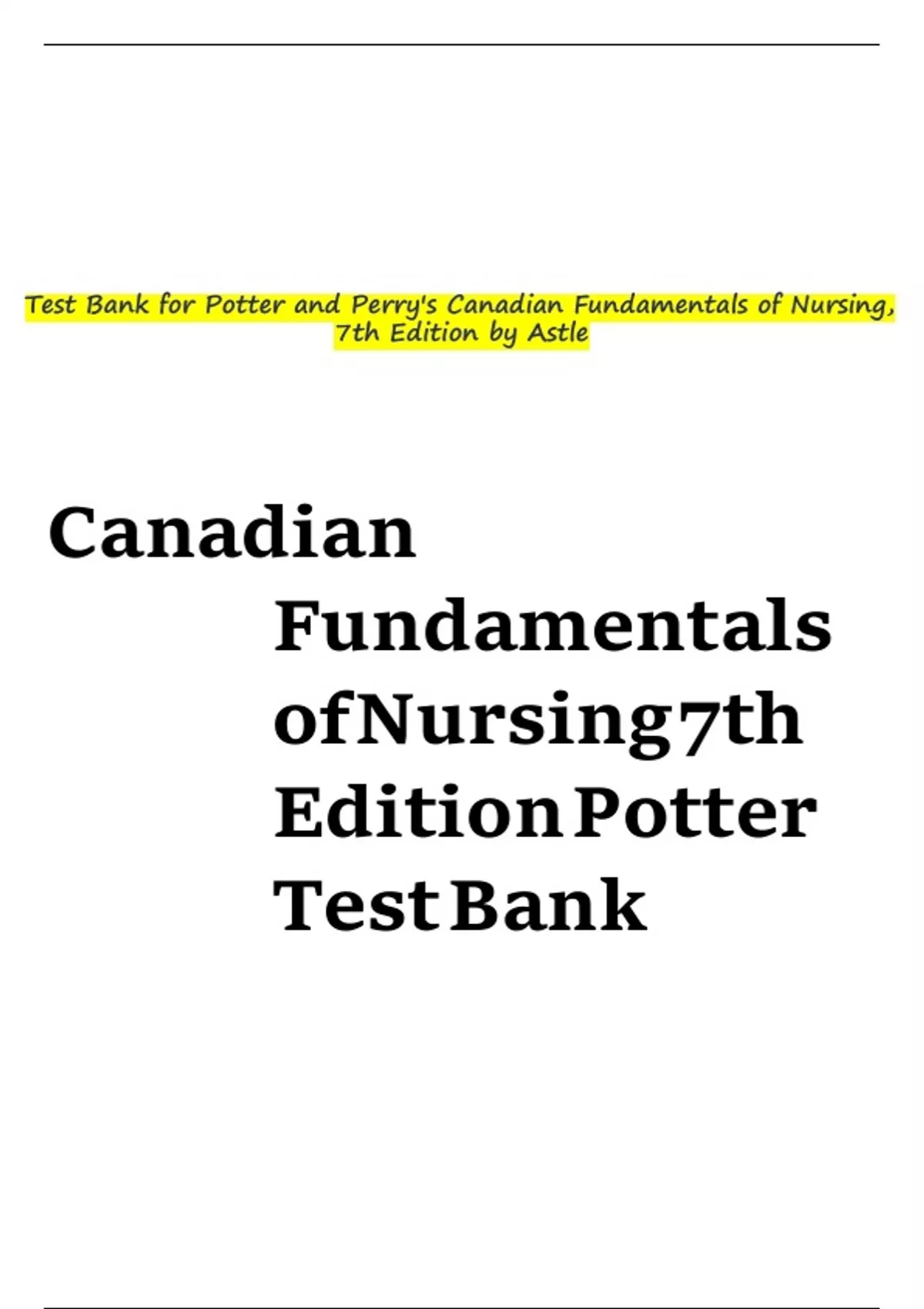 Test Bank for Potter and Perry's Canadian Fundamentals of Nursing,