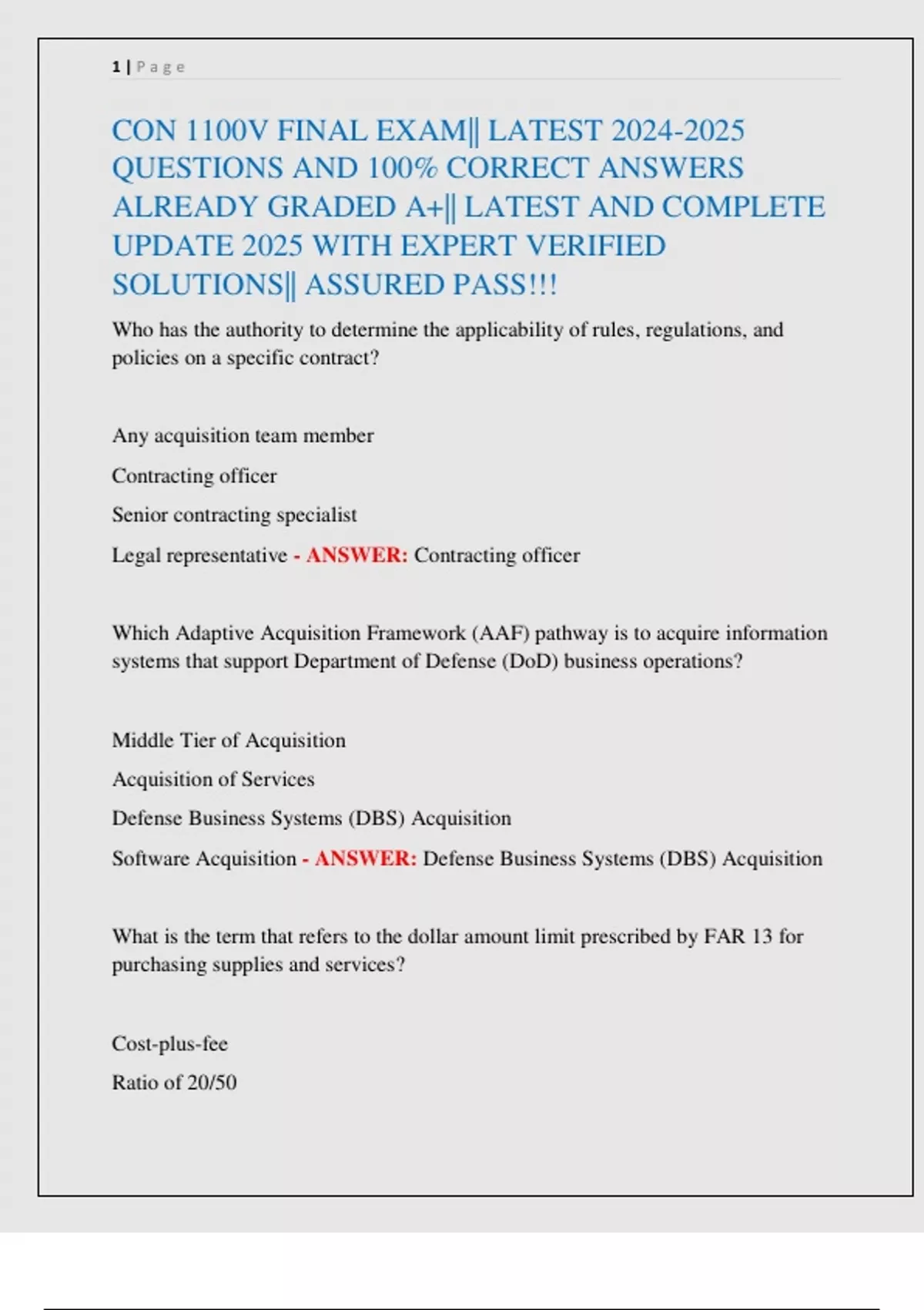 CON 1100V FINAL EXAM|| LATEST 2024-2025