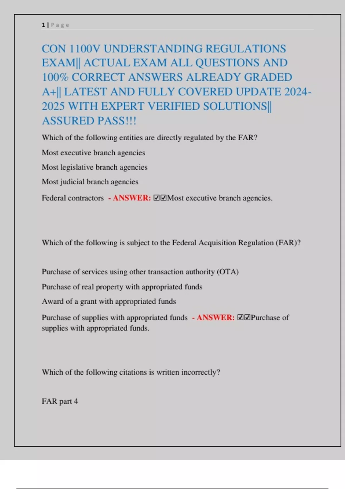 CON 1100V UNDERSTANDING REGULATIONS EXAM|| ACTUAL EXAM ALL QUESTIONS AND 100% CORRECT ANSWERS ALREADY GRADED A+|| LATEST AND FULLY COVERED UPDATE WITH EXPERT VERIFIED SOLUTIONS|| ASSURED PASS!!!