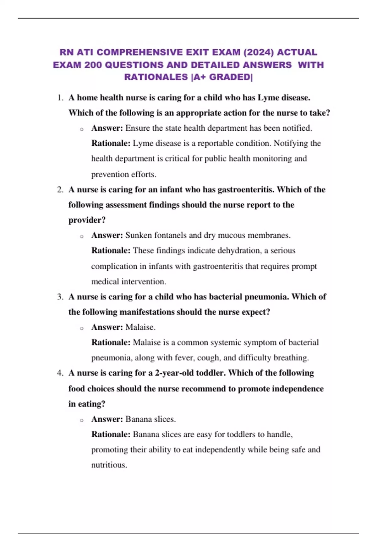 4. A nurse is caring for a 2-year-old toddler. Which of the following