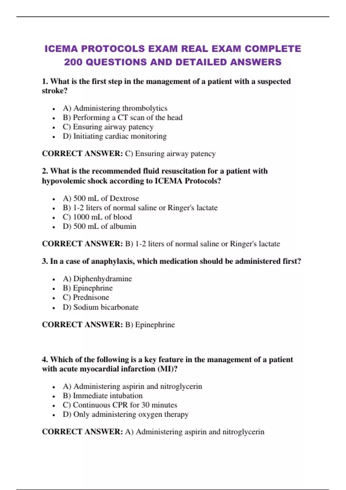 ICEMA PROTOCOLS EXAM REAL EXAM COMPLETE 200 QUESTIONS AND DETAILED ANSWERS
