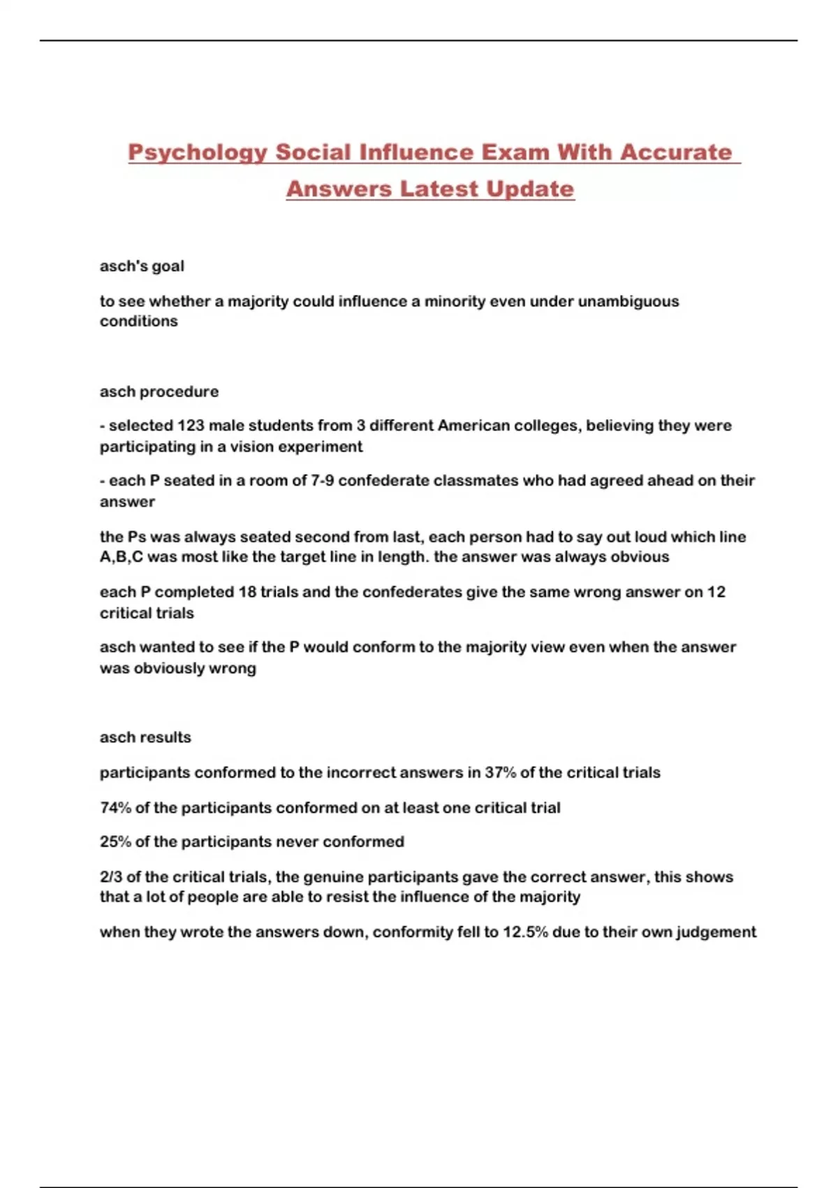 Psychology Social Influence Exam With Accurate Answers Latest Update...