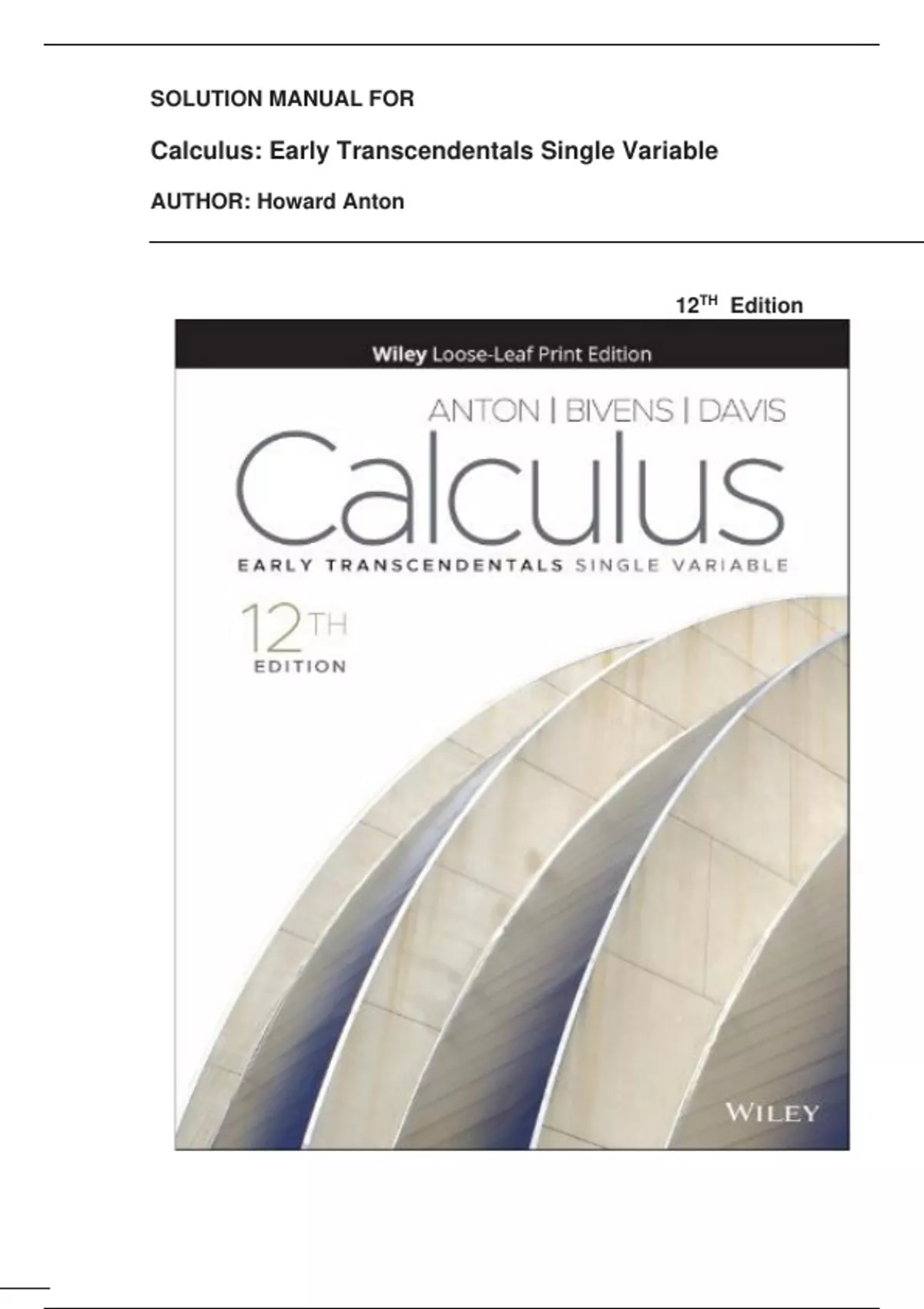 Solution Manual for Calculus: Early Transcendentals Single Variable 12th Edition . By: Howard Anton | Latest Edition
