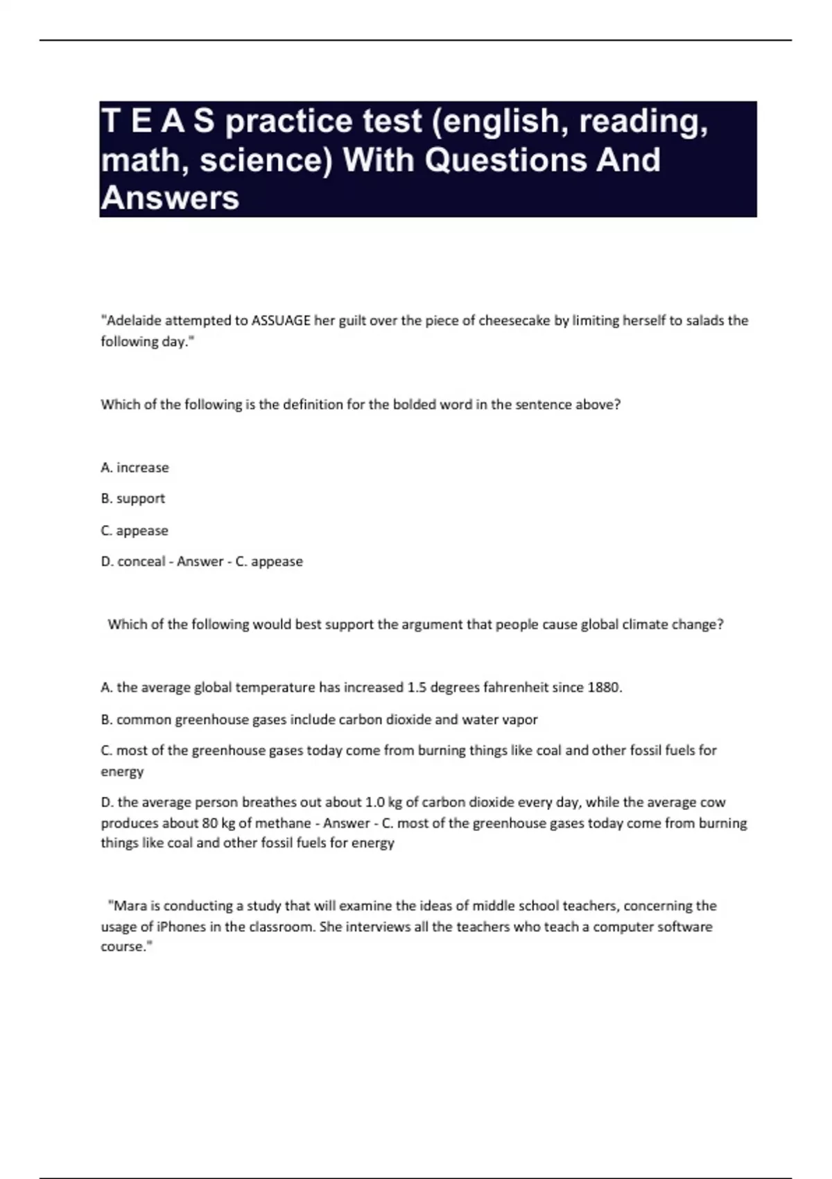 T E A S practice test (english, reading, math, science) With Questions And Answers